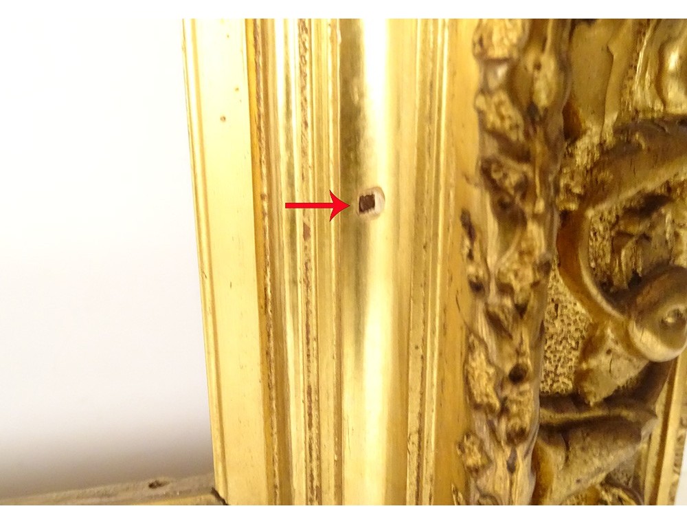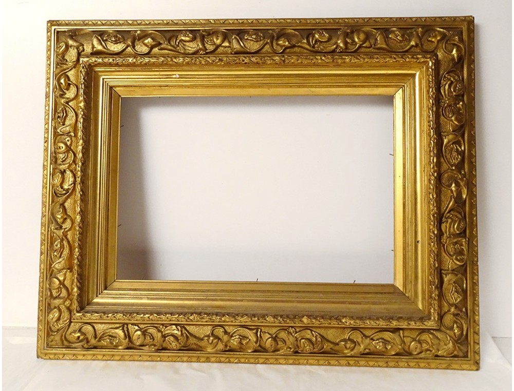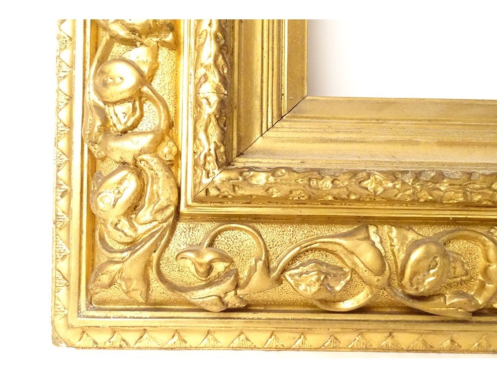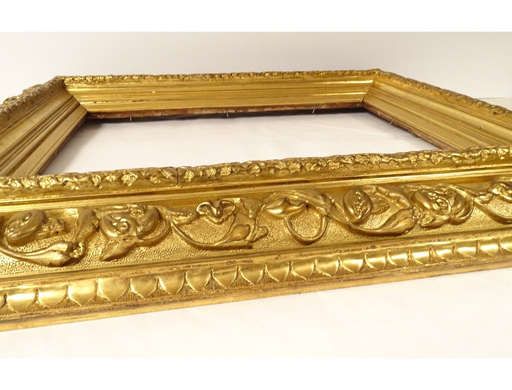 Large gilded stuccoed wooden frame with flowers and foliage, Art Nouveau, late 19th century