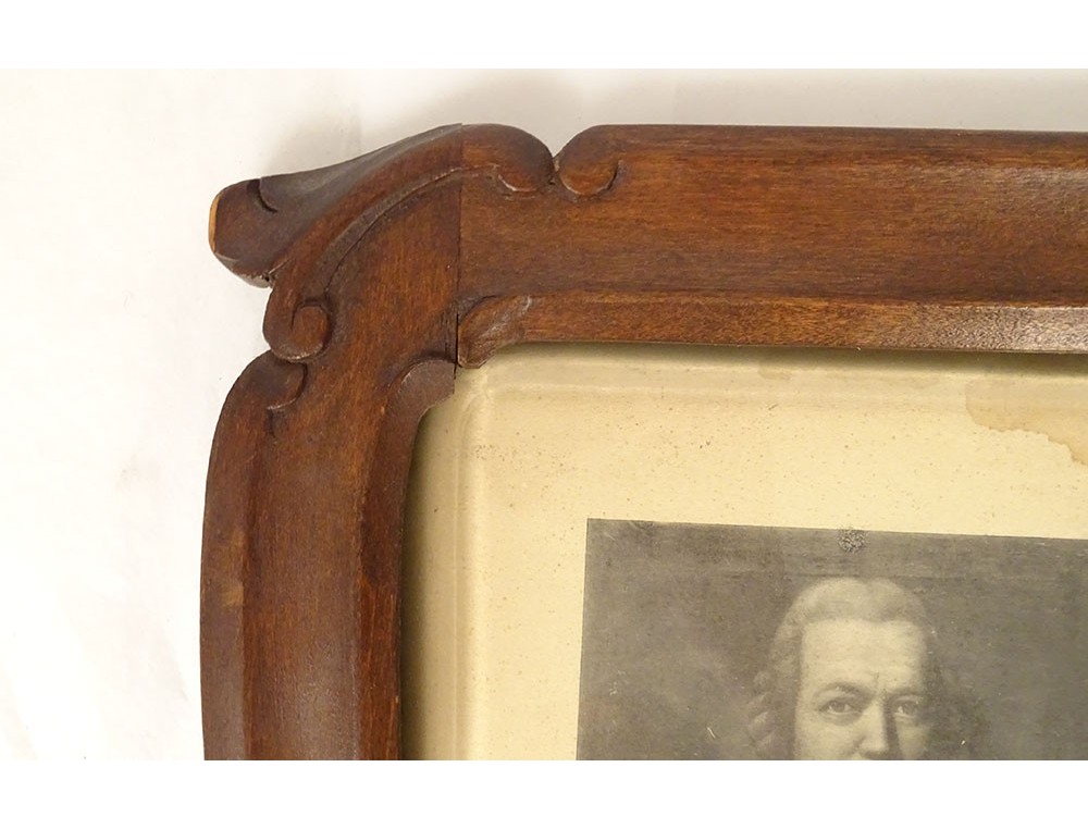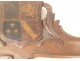 Carved wooden frame presenting on the top a coat of arms in a shield: a quartered coat of arms (2: golden lion on a gules background / 3: three golden stars on an azure background / 4: golden band),