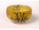 Small miniature circular cup in molten glass signed Daum Nancy *, with acid-etched decoration and enhanced with enamel of bare trees in a snowy landscape, on an orange background, from the Art Nouveau period at the end of the 19th-beginning of the 20th centuries .