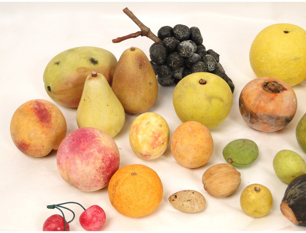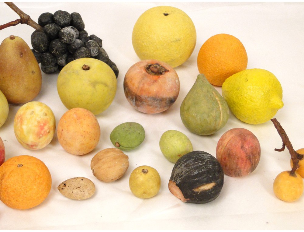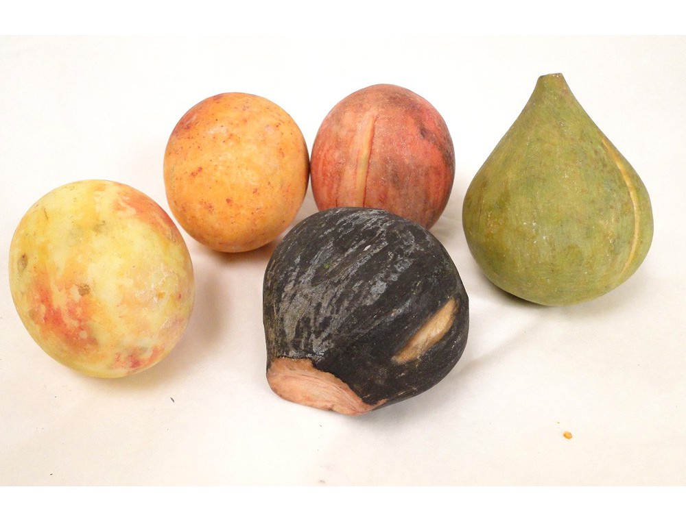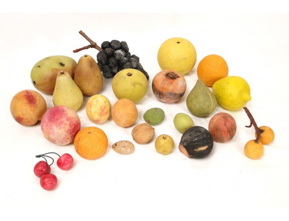 Set of decorative fruits Carrara marble *, including many fruits (apple, pear, lemon, orange, grape, cherry, peach, apricot, fig ... etc), vintage late nineteenth and early twentieth century.