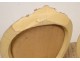 A report: minor tasks use on fabrics, some edges of the trim peeling, chairs and will move to pick up, trace a repair at the top of a seat (not visible), some slight wear and gaps the paint, see photos.