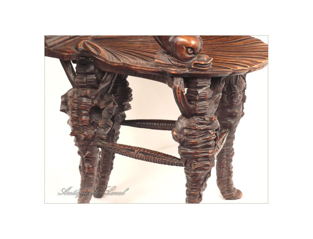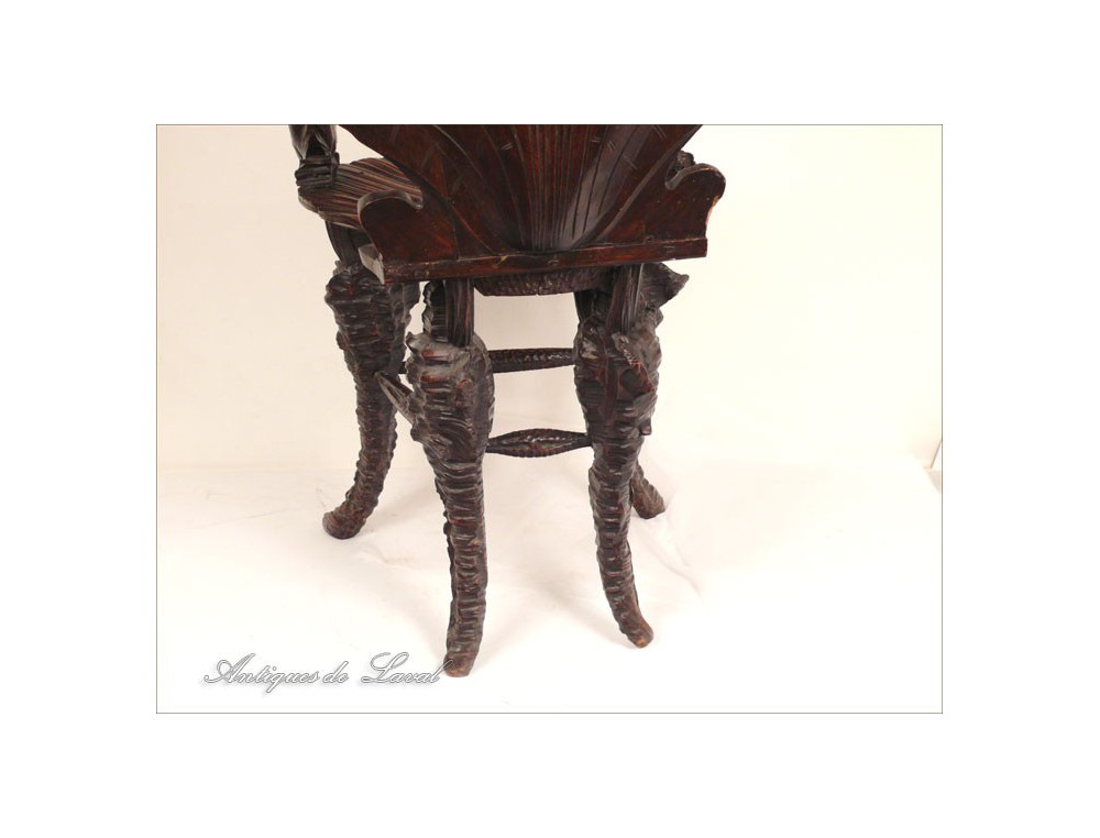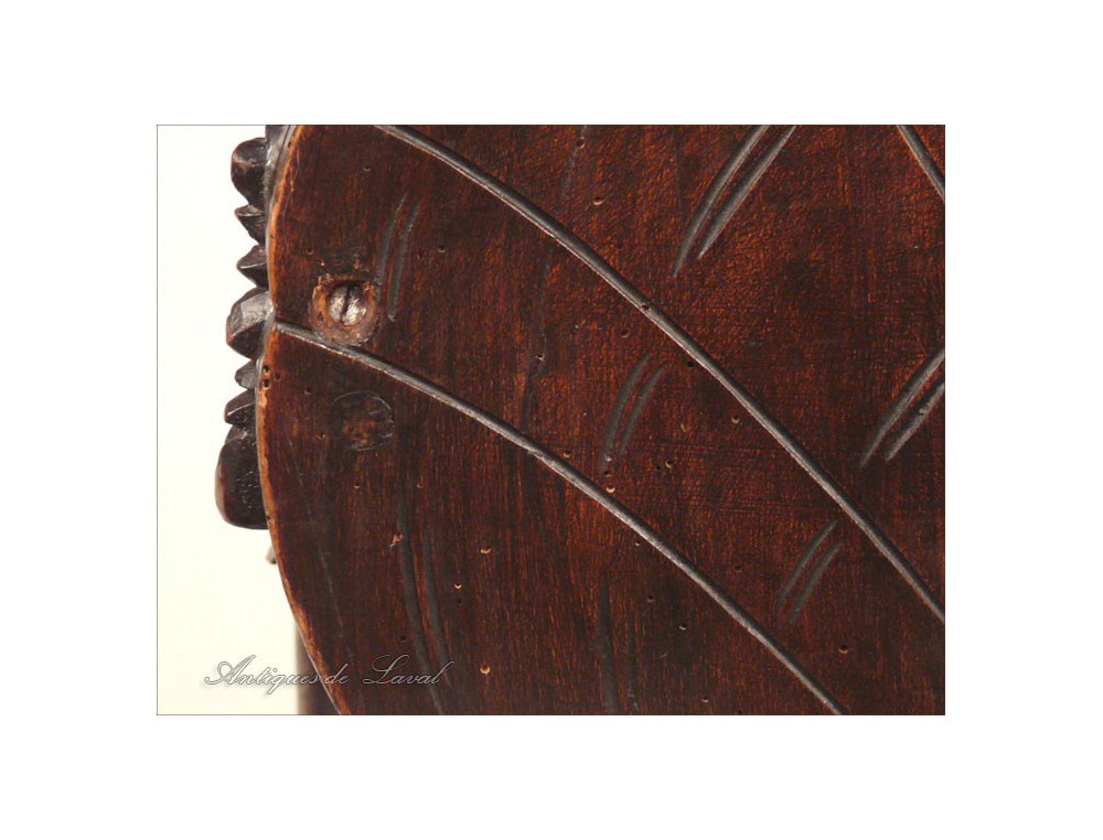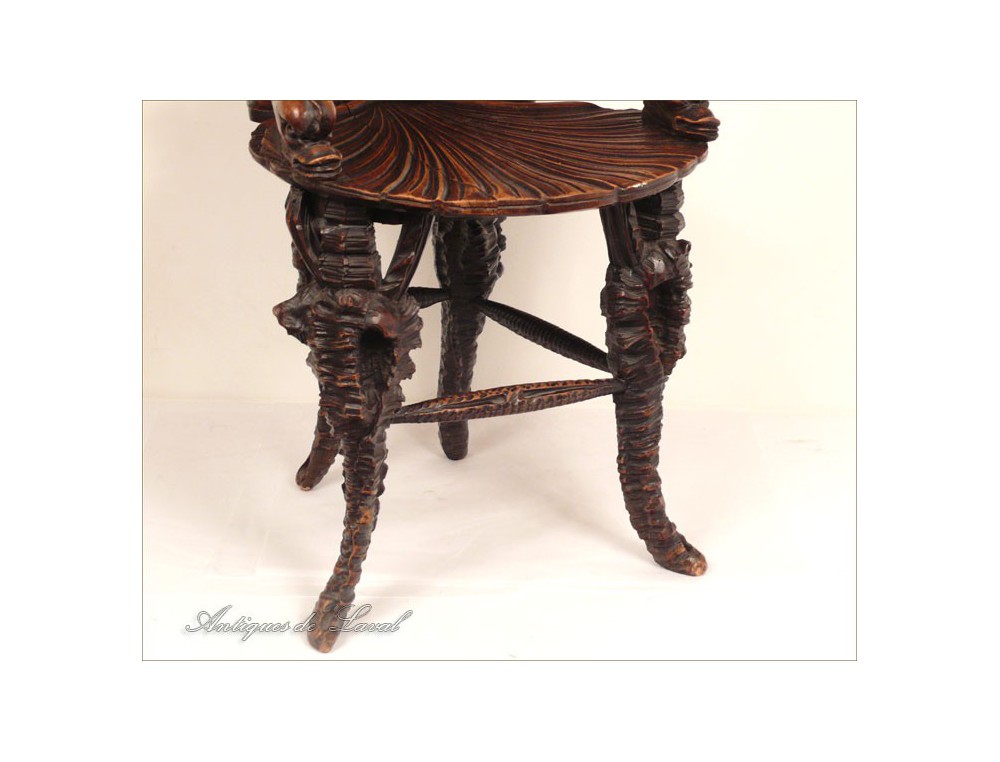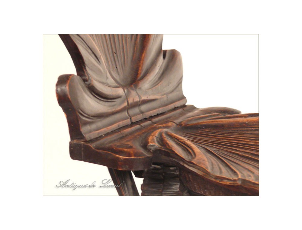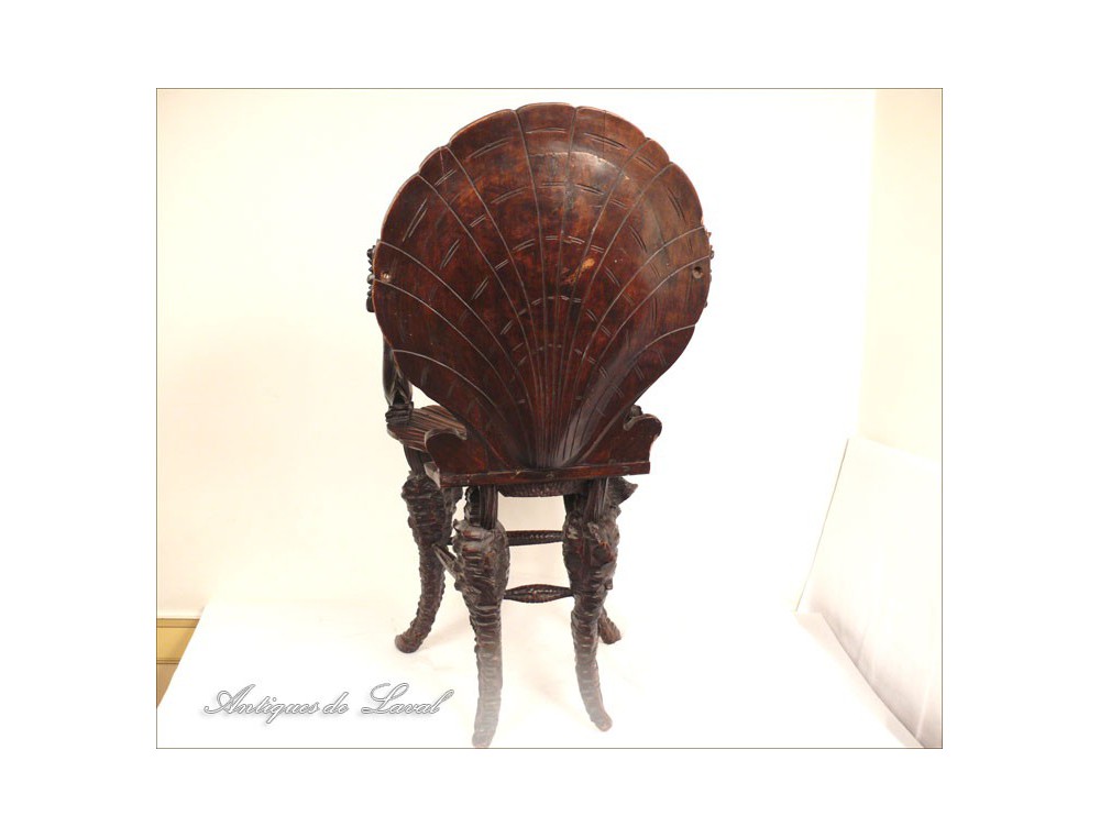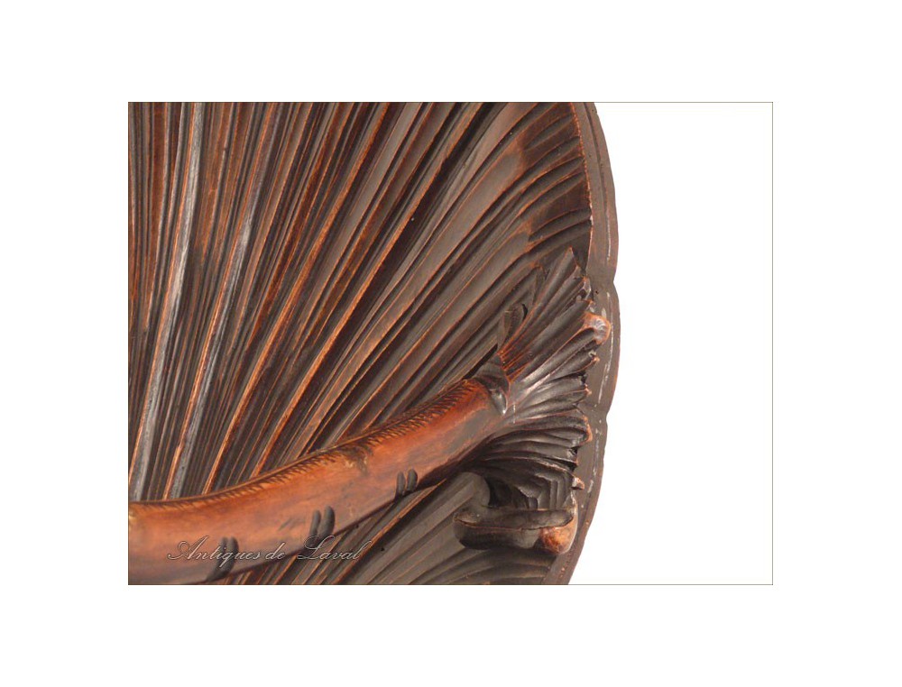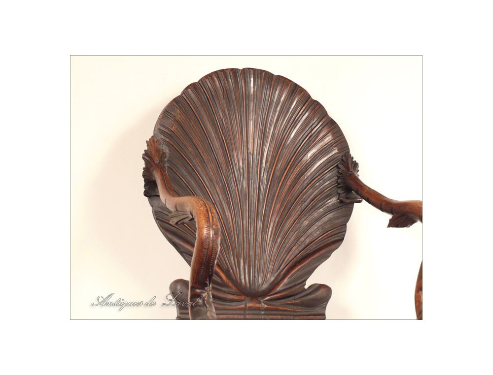 Rare says Rococo style chair cave, decorated with a scallop-Jacques for back and seat, shells for the base and heads for armrests dolphins, of XIXth century.