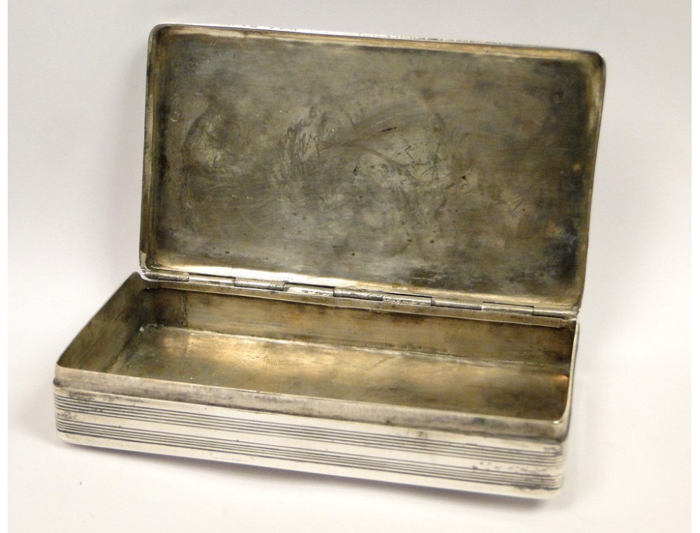 Dutch silver box, fully and finely carved, decorated with flowers and arabesques, punch Big book (2nd title Lion) and punch import, XIXth century.