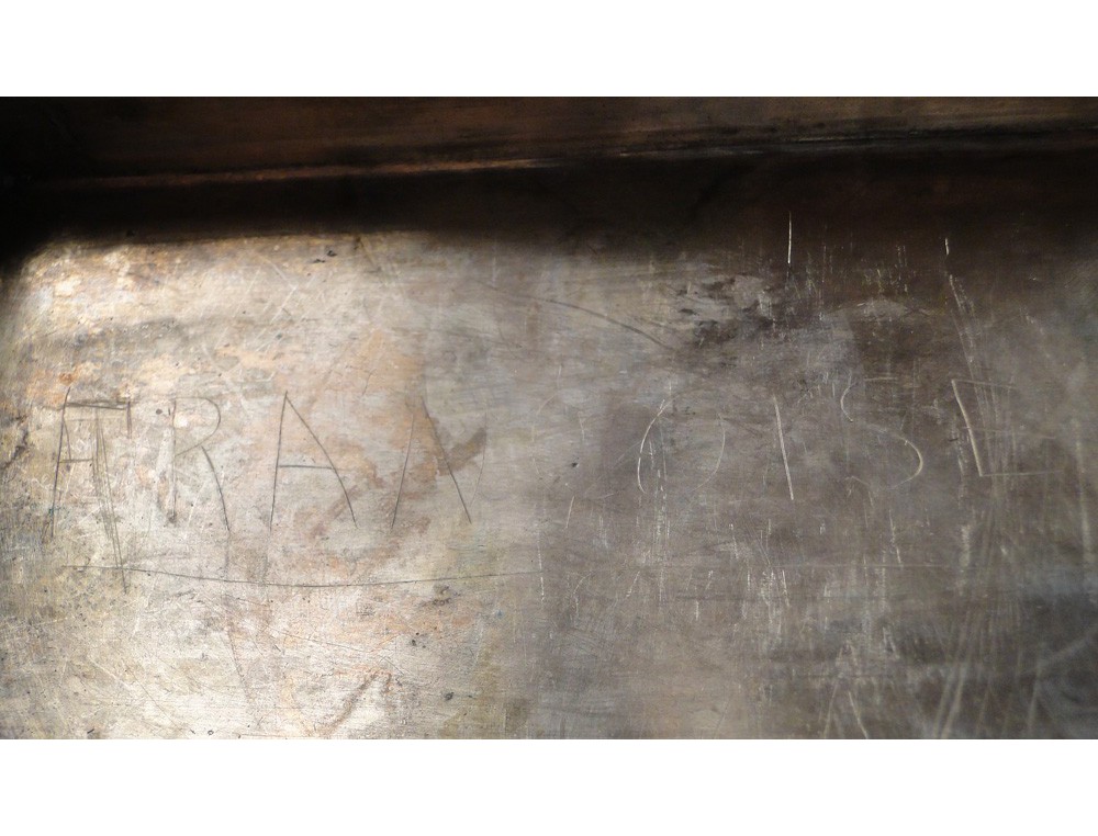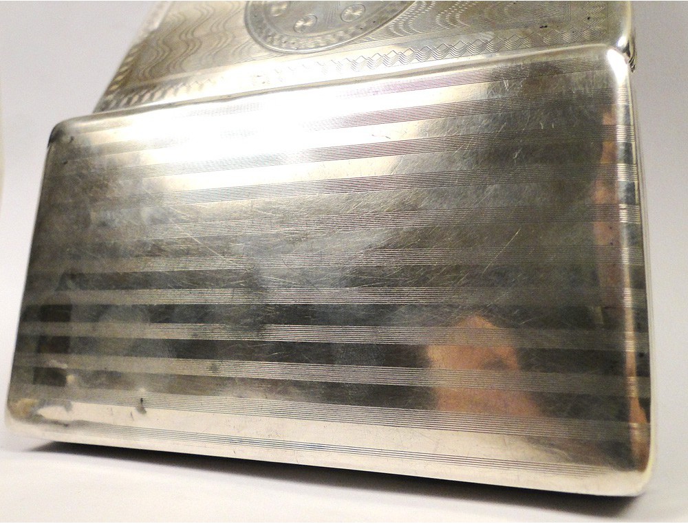 A note: wear of time and money on scratch, a name was etched roughly in the bottom of the box, use tiny shock to see pictures.