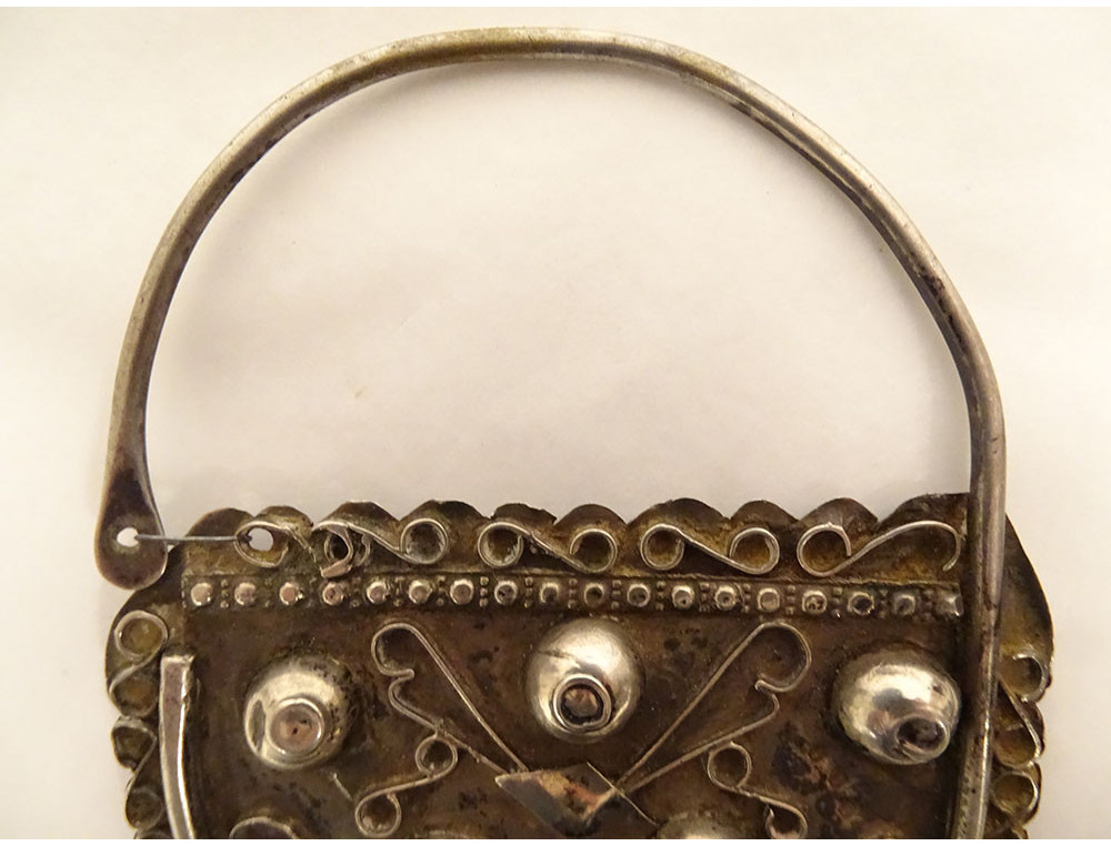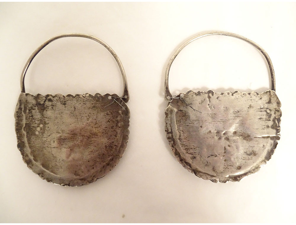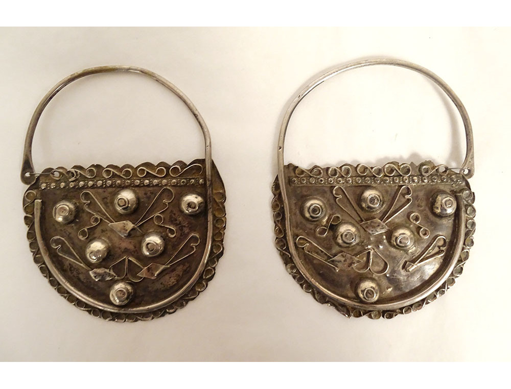 Pair of silver earrings from Tunis, Tunisia, Berber, Maghreb, 19th century jewelry