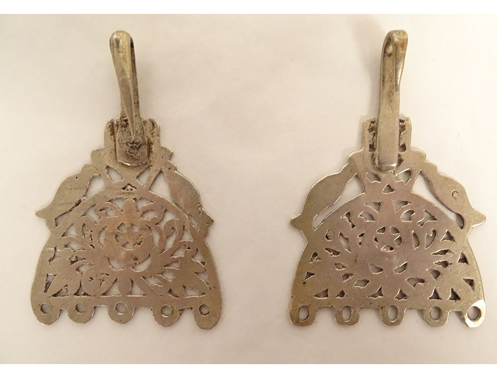 Pair of silver earrings from Tunis, Tunisia, Berber, Maghreb, 19th century jewelry