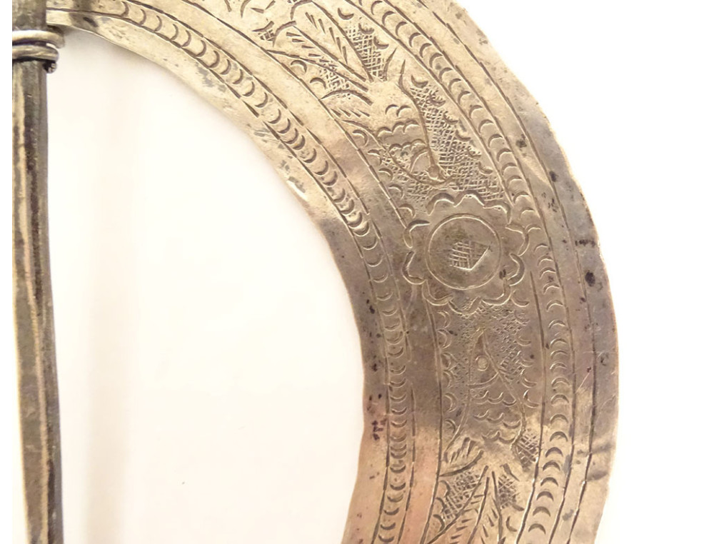 Pair of Berber earrings in chased silver, from Maghreb - Tubisie (Tunis), dating from the late 19th-early 20th centuries.