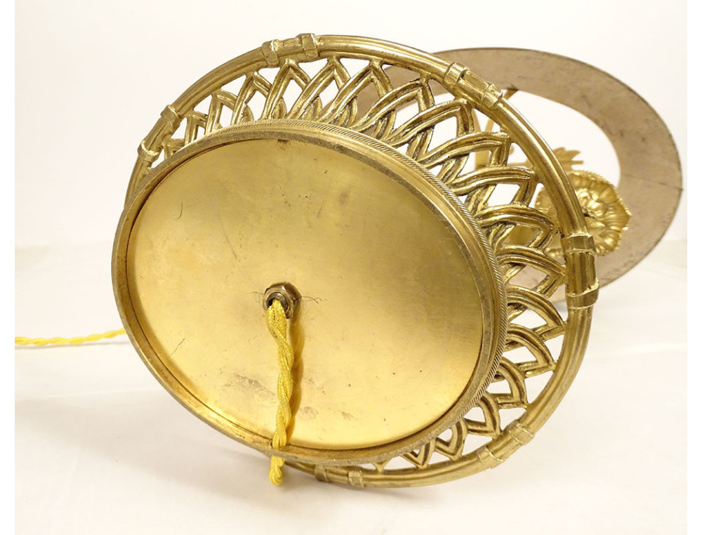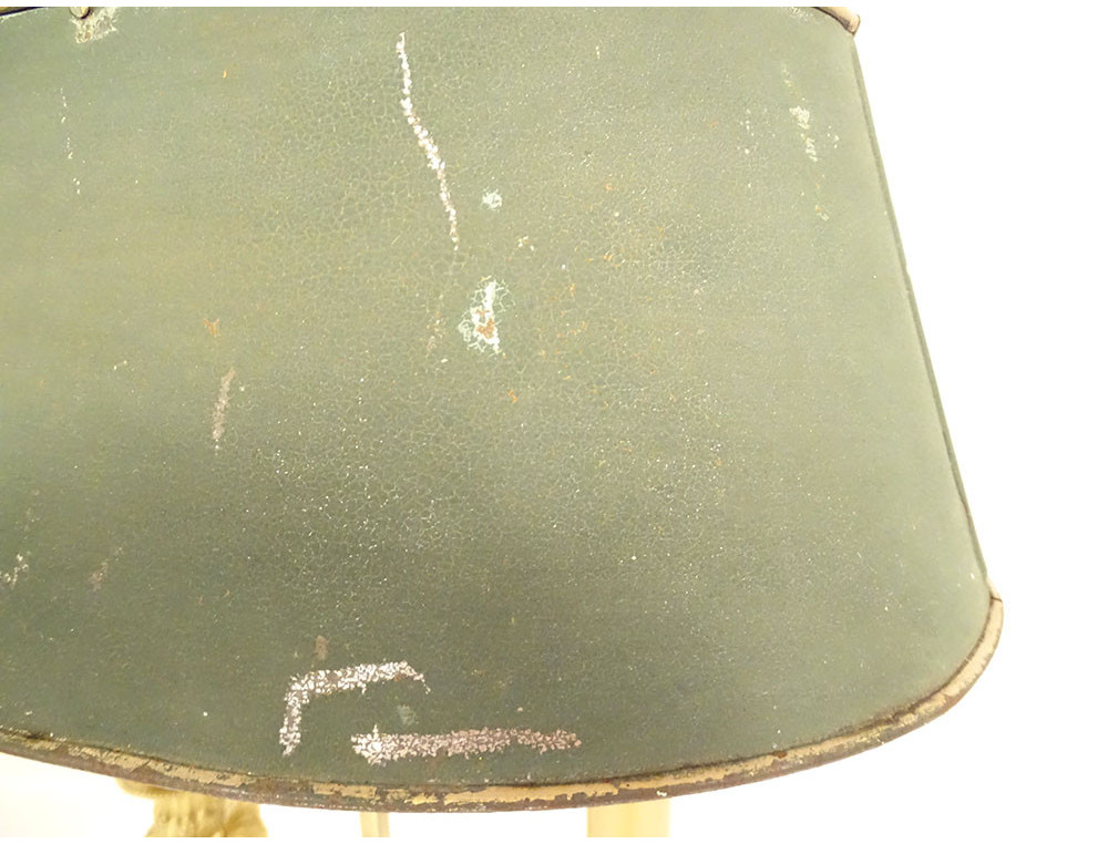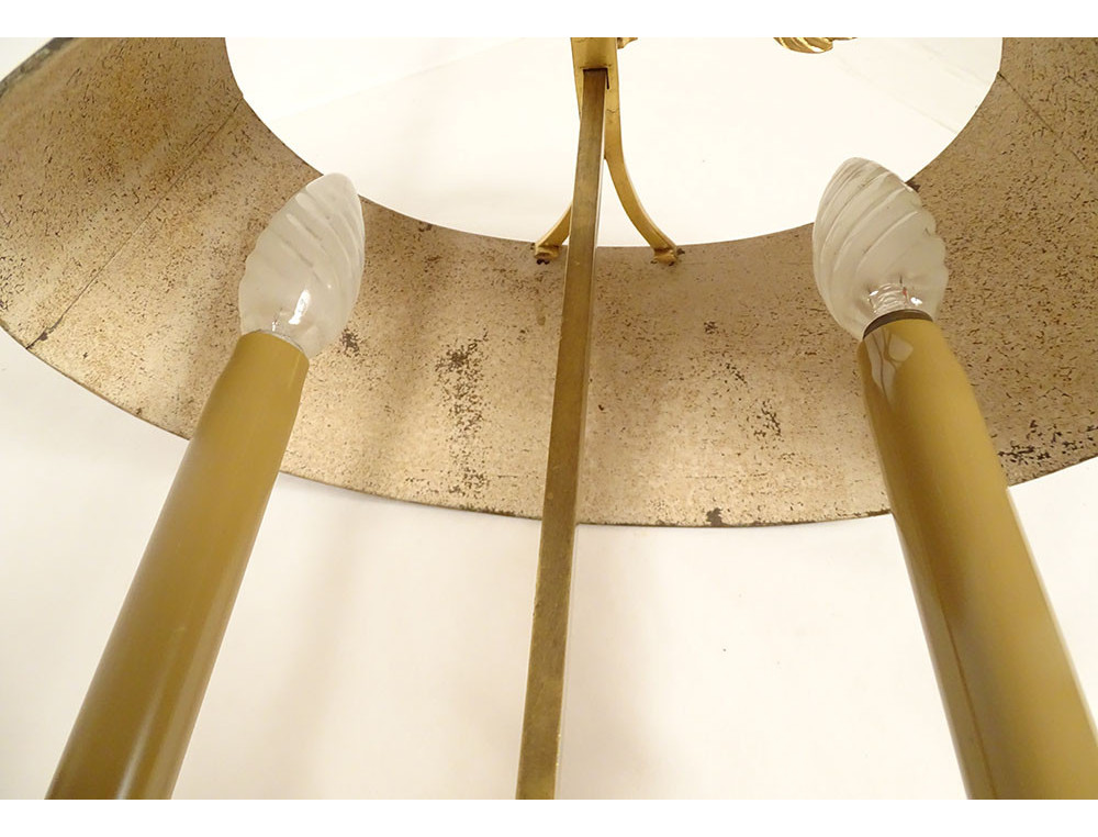 This lamp is in good condition. The wiring has been rewired and works perfectly. The faux candles are made of opaline. The lampshade is height-adjustable.