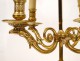 Beautiful and large lamp kettle Empire gilt bronze finely chopped and guilloché decorated with eagle heads, feathers, and small flowers, shade painted metal, vintage twentieth century.