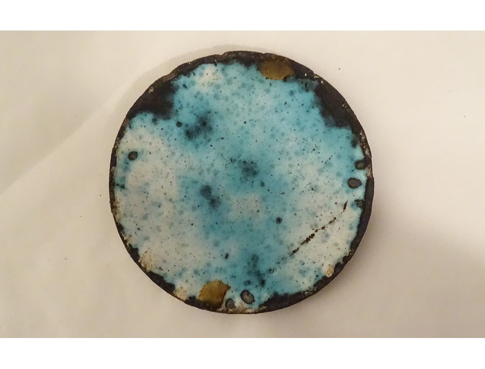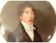 Round miniature painted on enamel signed Hamm* representing the portrait of a young man in a frock coat and high collar, from the 1st Empire period at the beginning of the 19th century.