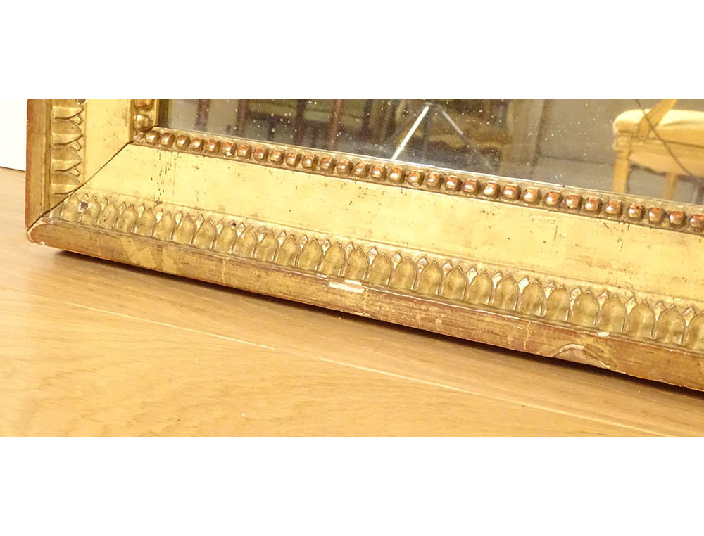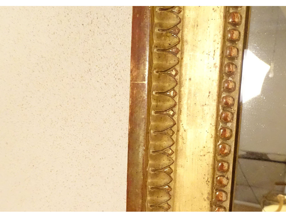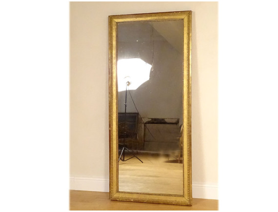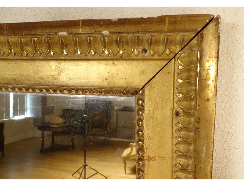 Large Louis XVI mirror, gilded wooden frame decorated with egg friezes and pearl friezes, from the early 19th century.