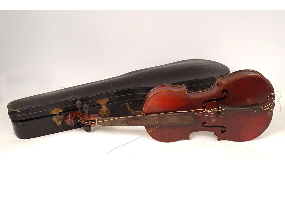 Whole violin with label Thévenin luthier patented Paris, with its bow and its case, vintage late nineteenth and early twentieth centuries.