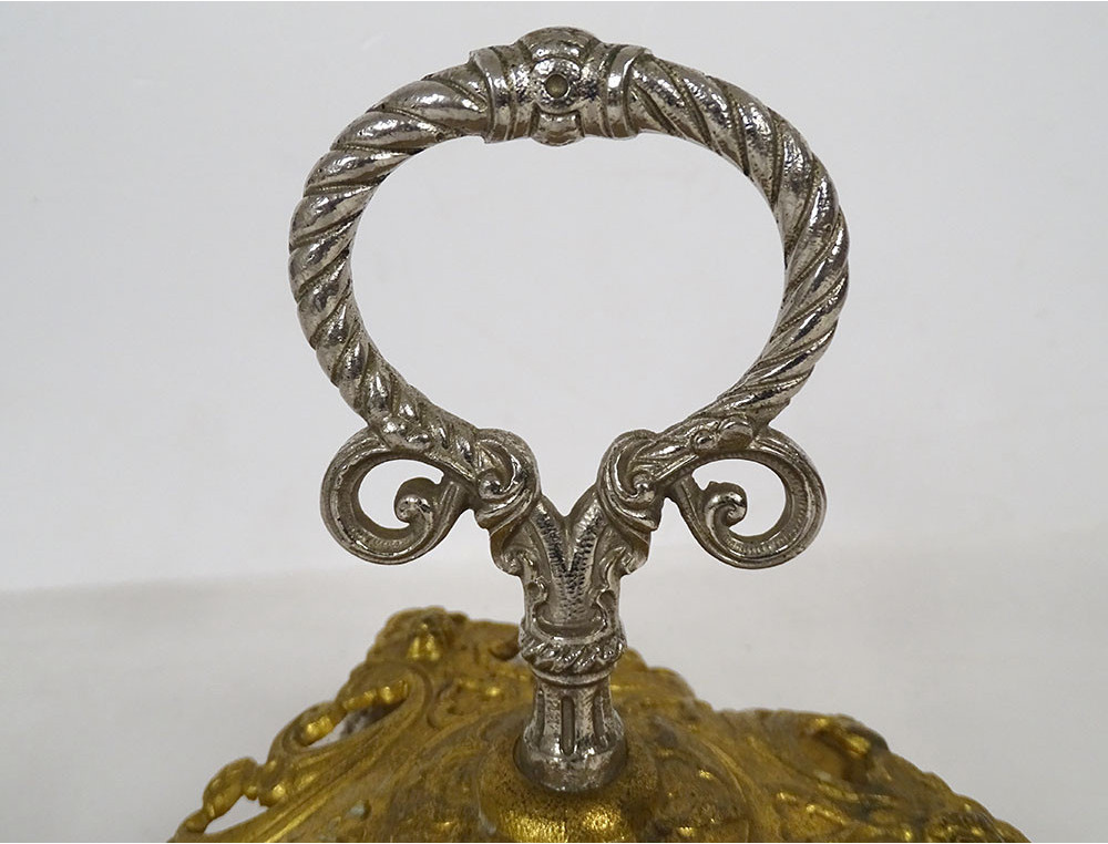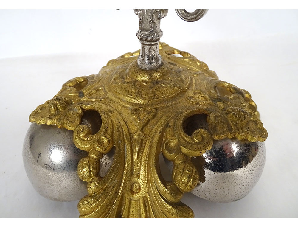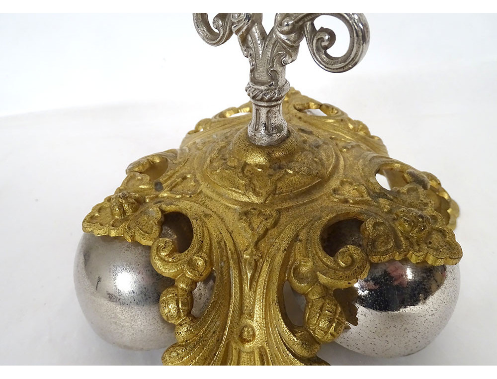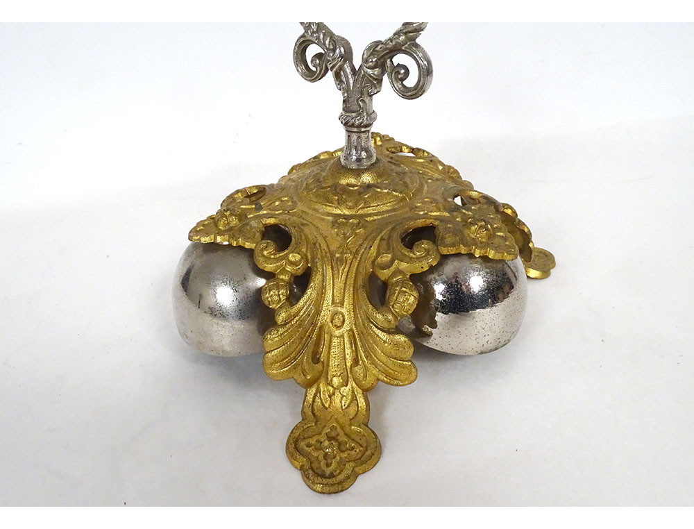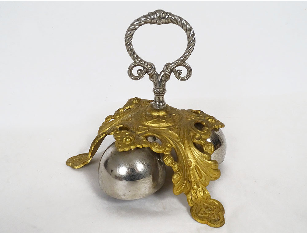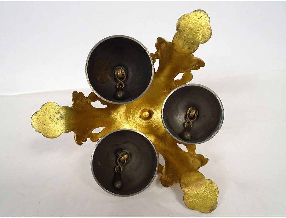 Ceremonial bell with 3 bells, in gilt and silvered bronze, decorated with stylized foliage, from the 19th century.