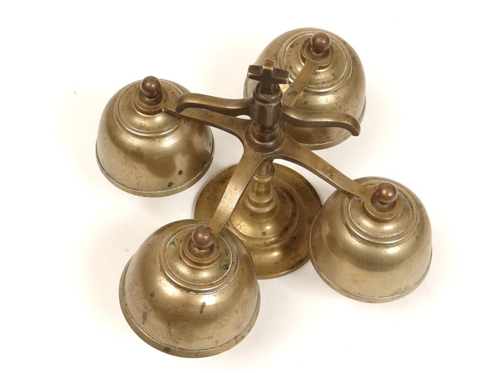 Beautiful bell ceremony at 4 bells, gilt bronze, decorated with a cross on top of XIXth century.