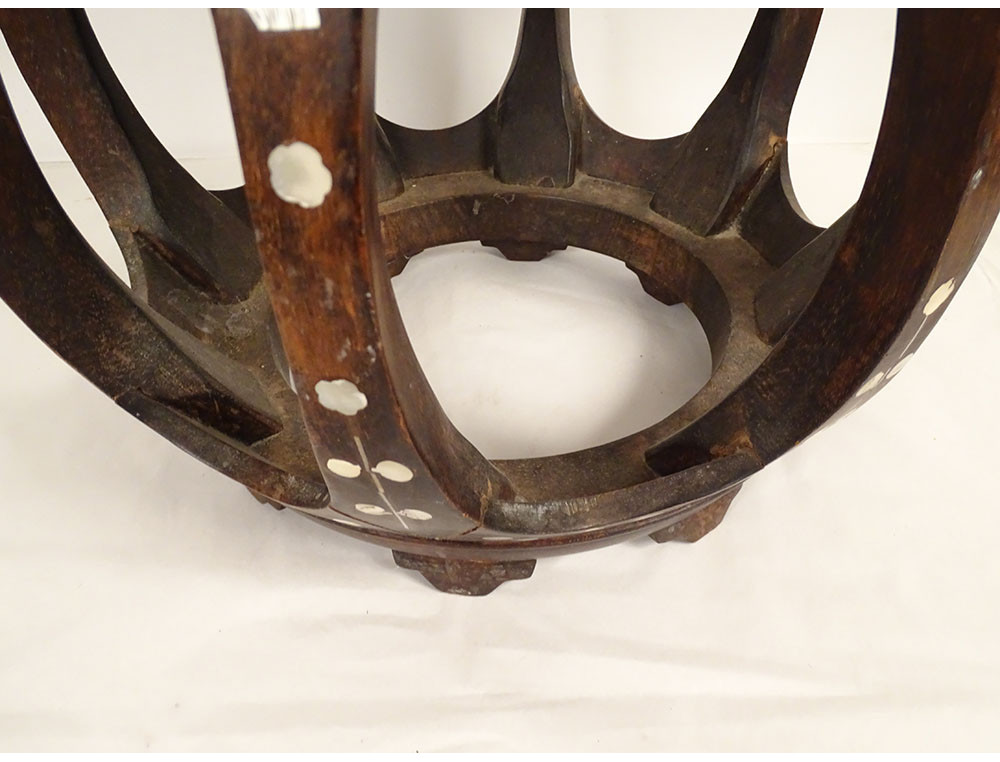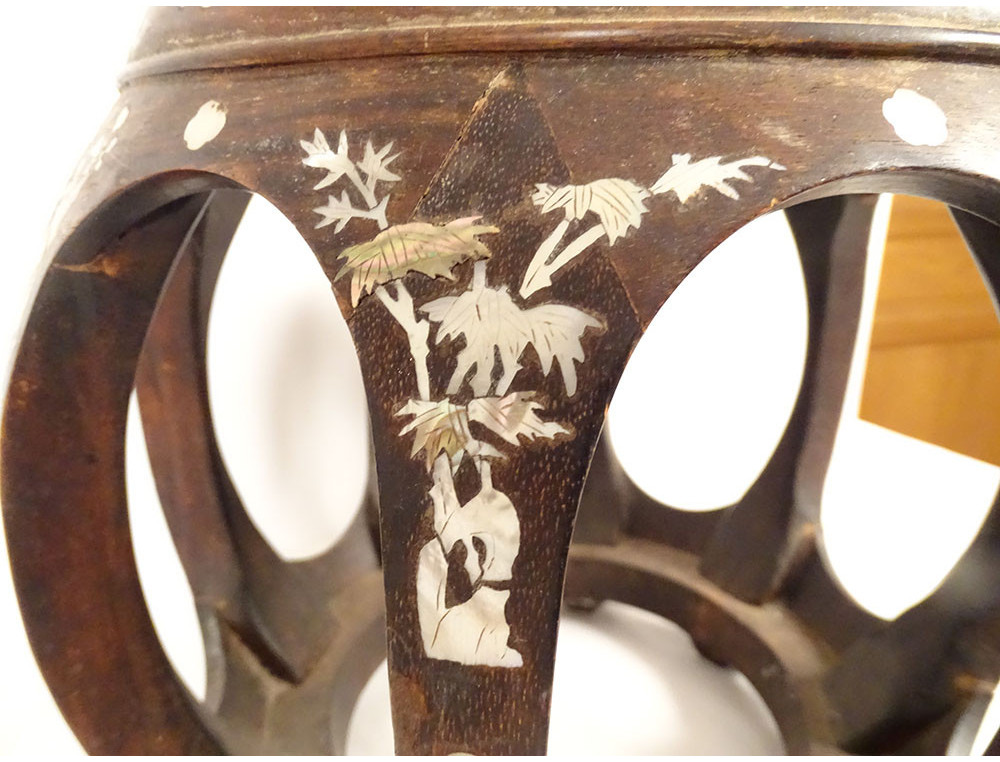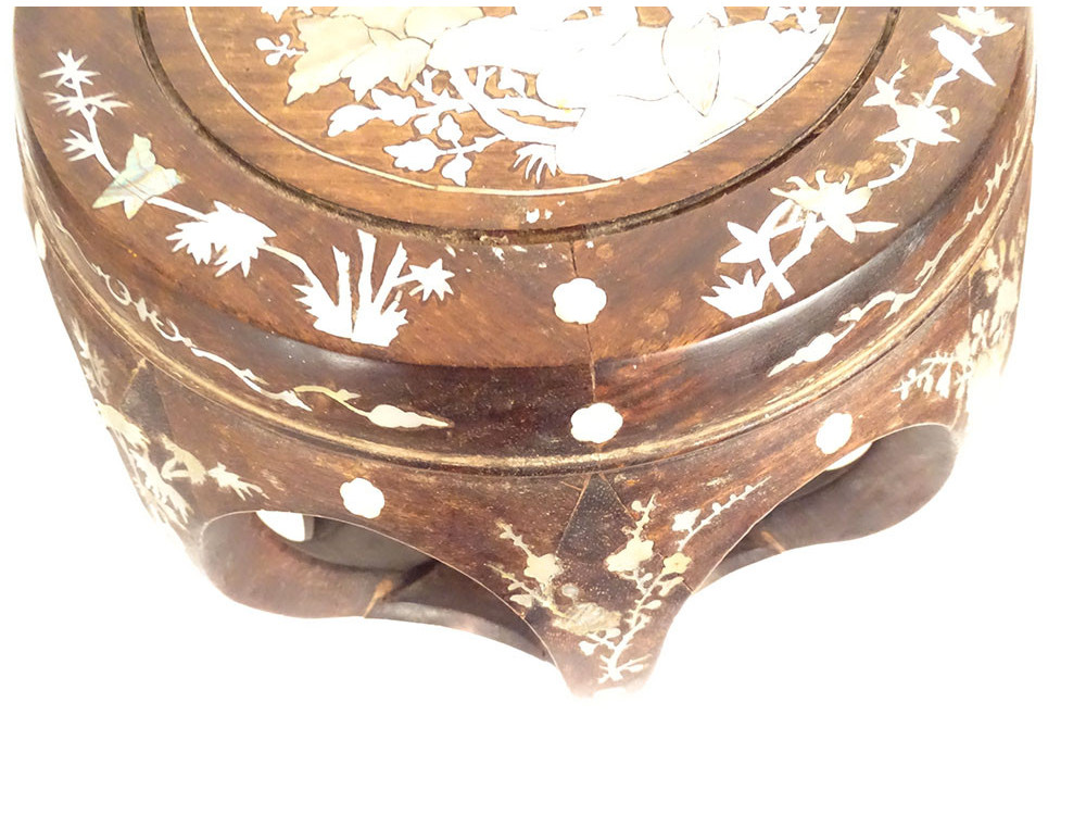 Small wooden stool with mother-of-pearl inlay, flowers, birds, Vietnam, 19th century