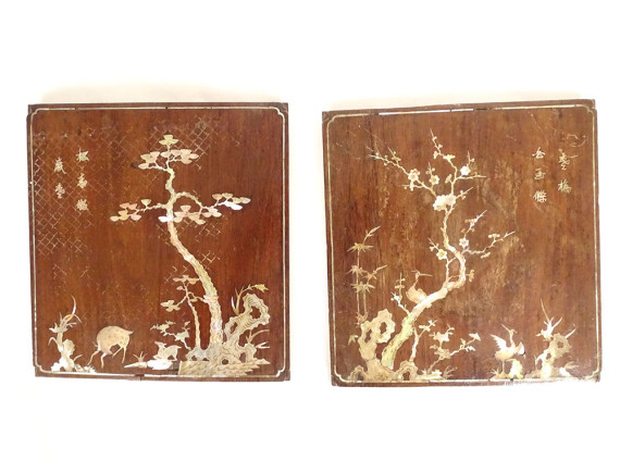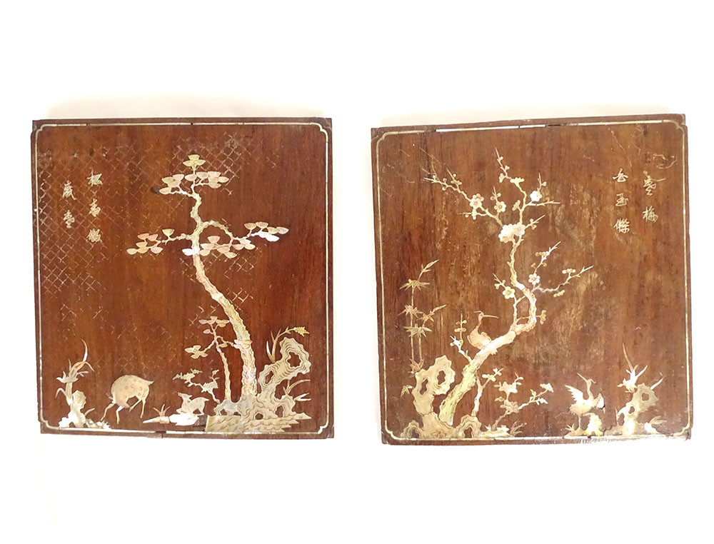 Pair of decorative wooden panels with mother-of-pearl inlays, Vietnam/Indochina, 19th century