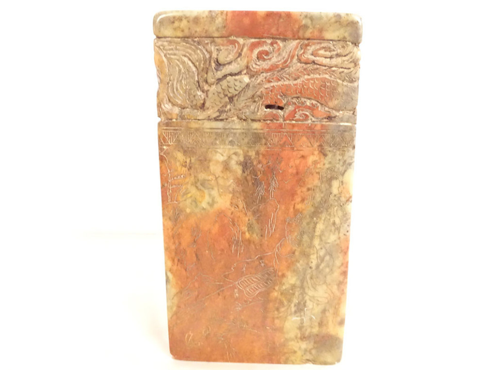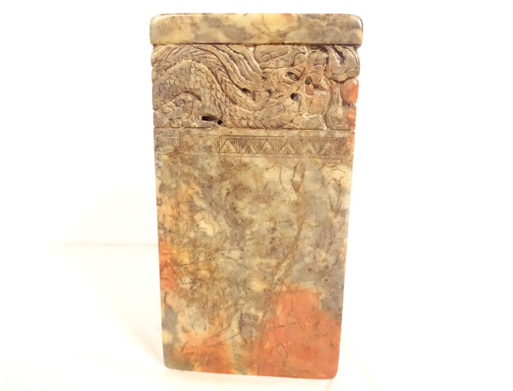 Chinese hardstone seal carved with dragons and sacred pearl, 20th century