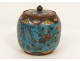 Very nice pot covered cloisonné enamel decorated with a colorful bird fluttering among beautiful flowers and branches, from Japan, of XIXth century.