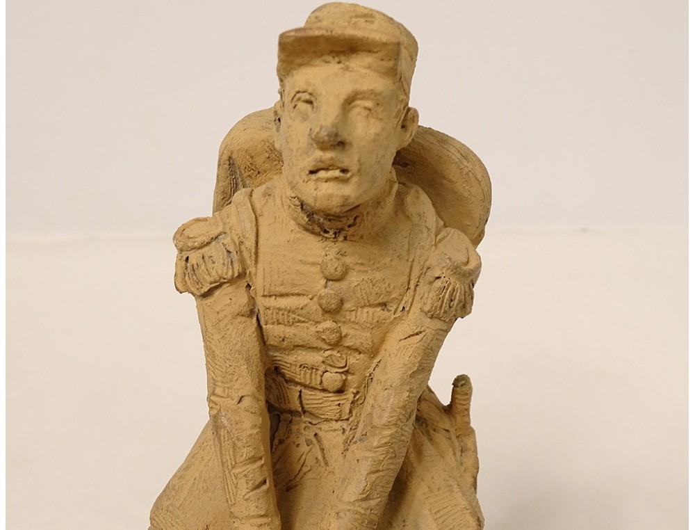 Terracotta sculpture signed T. Hébert * and dated 1859 representing a humorous or satirical scene with a soldier sitting on the back of a pig and using it as a makeshift frame, from the 19th century.