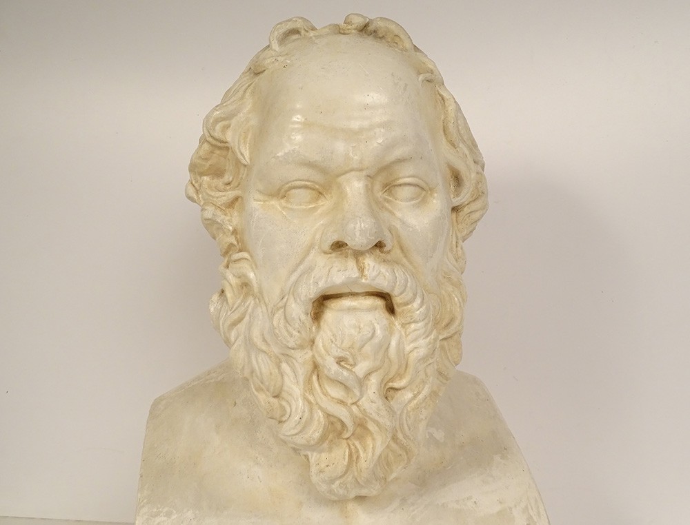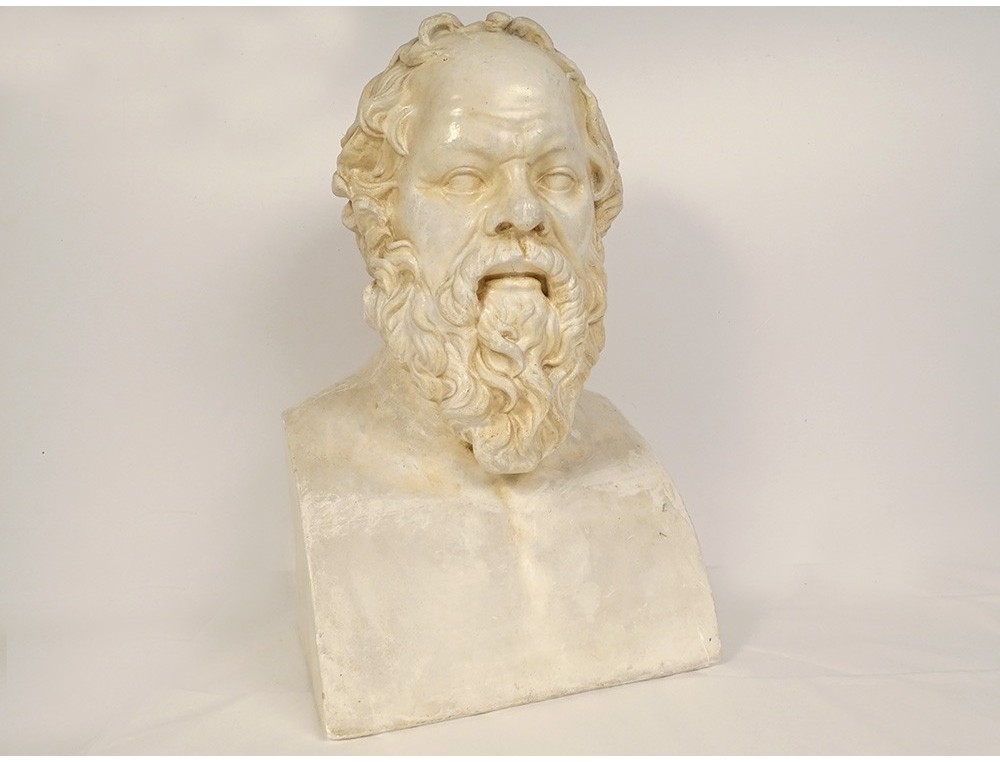 Sculpture bust Socrates plaster Greek philosopher Louvre Museum Cast 20th century