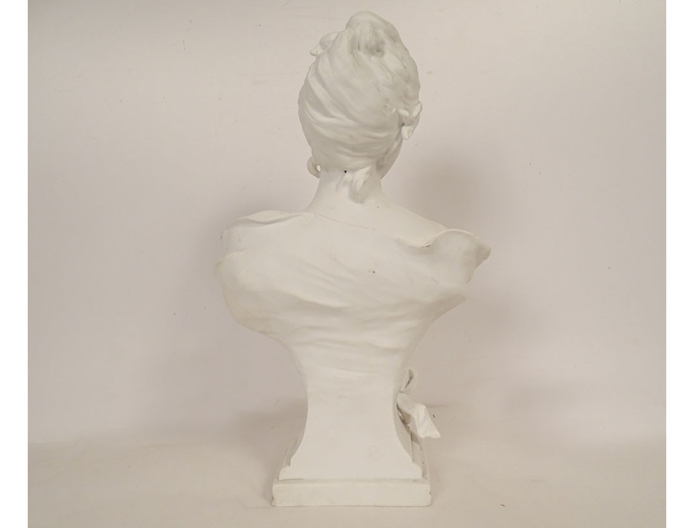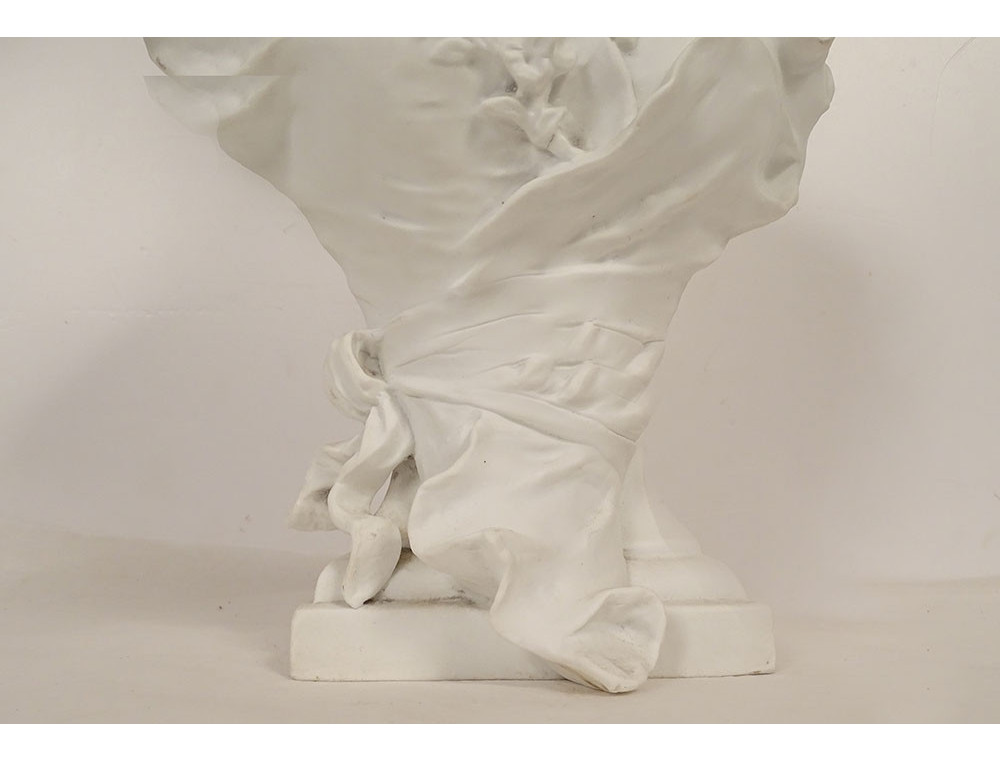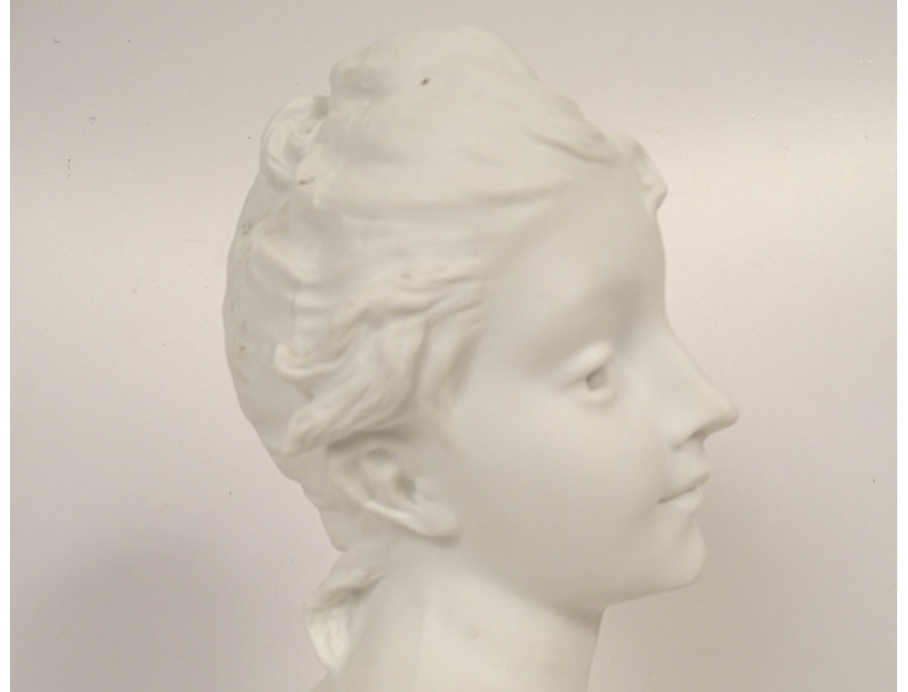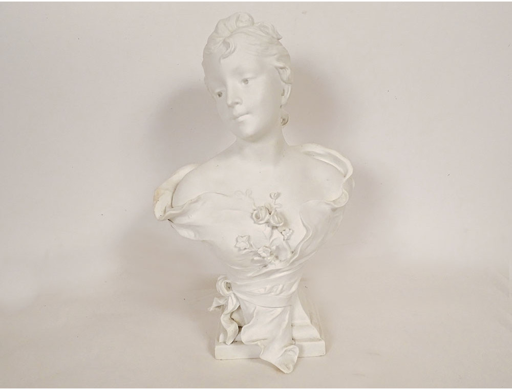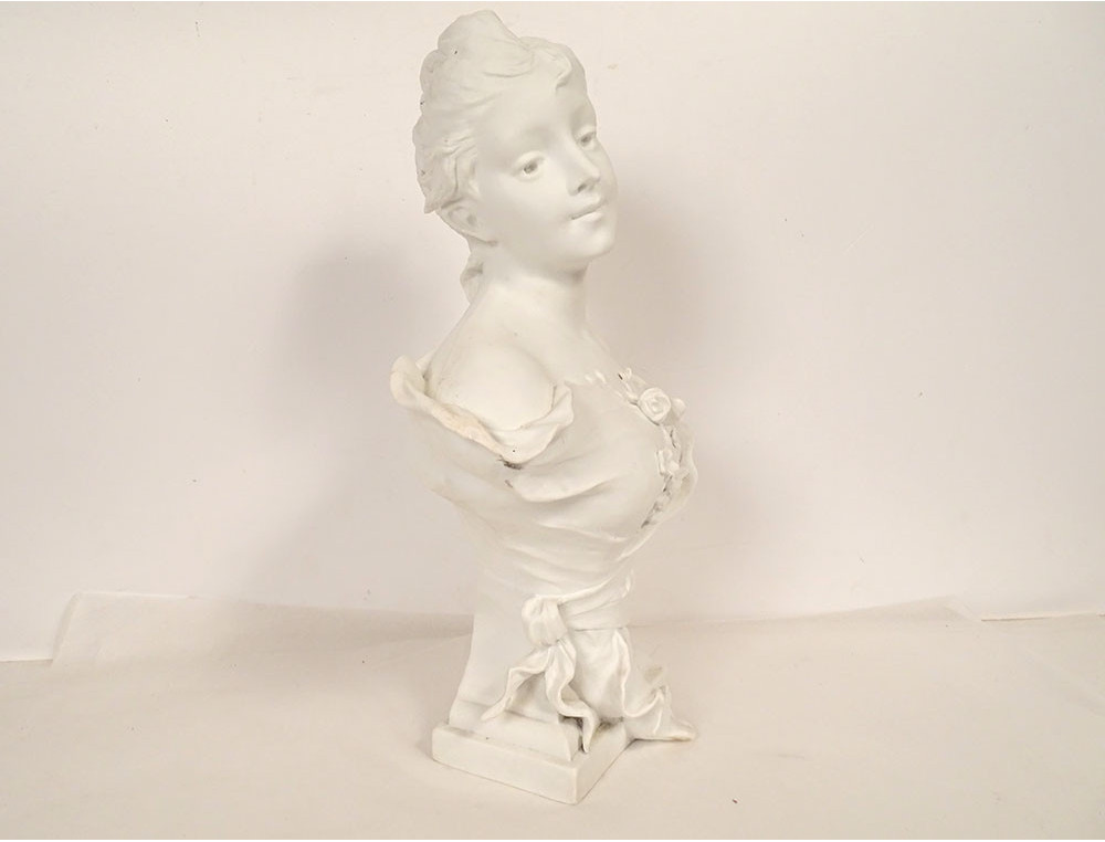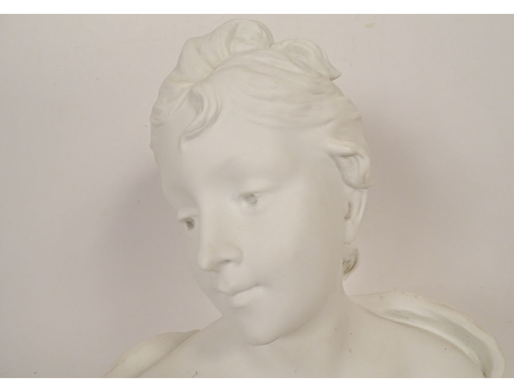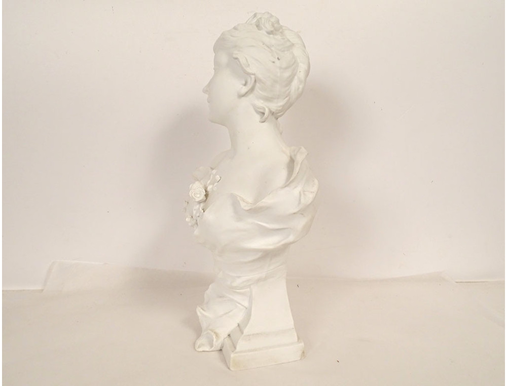 Sculpture bust of a woman, Sylvain Kinsburger, Limoges biscuit porcelain, Art Nouveau, 19th century