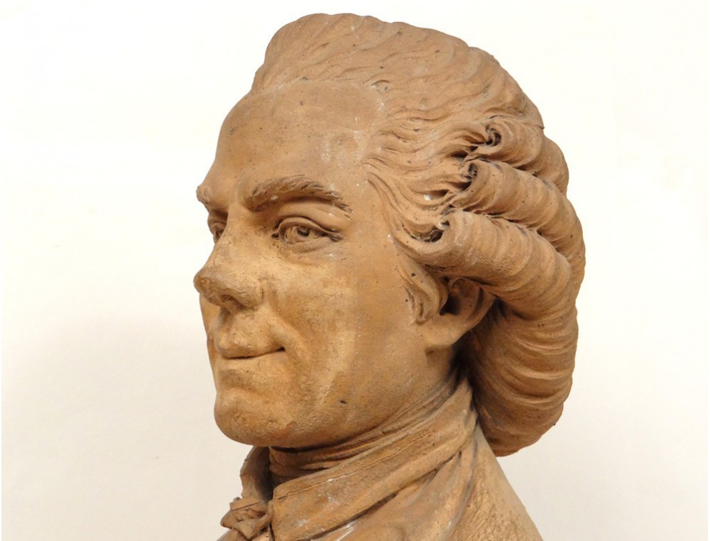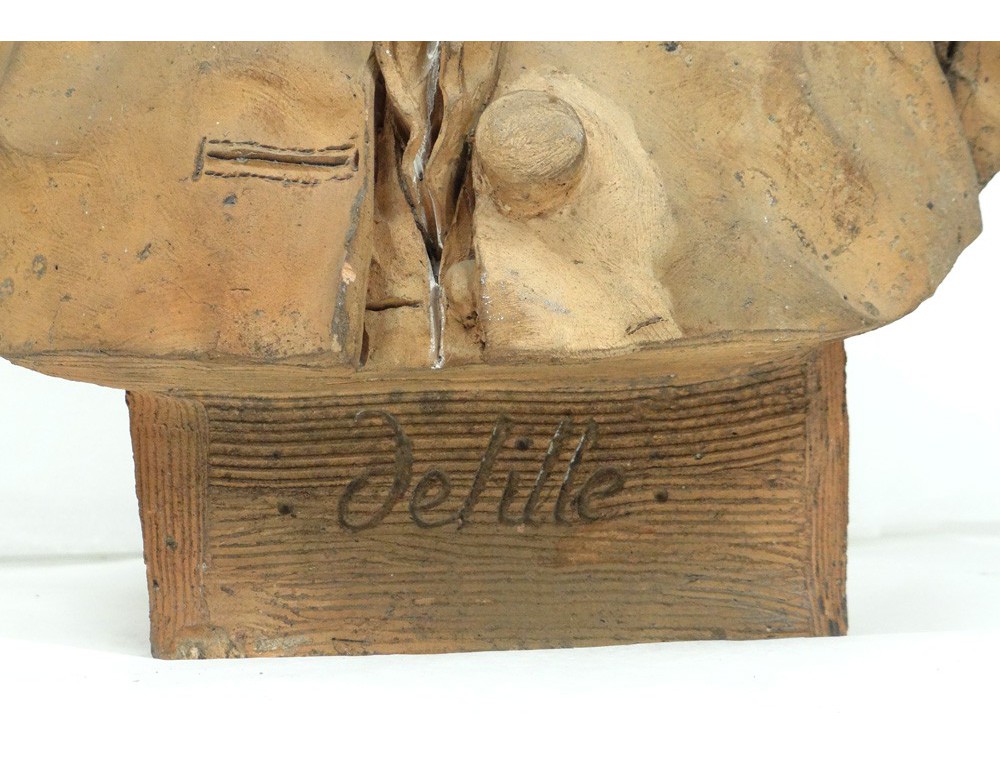 Exceptional and rare terracotta sculpture, representing the bust of the French poet Jacques Delille * period eighteenth century. Accompanied by a book of Jacques Delille "Poems Fugitives", Paris, 1807.