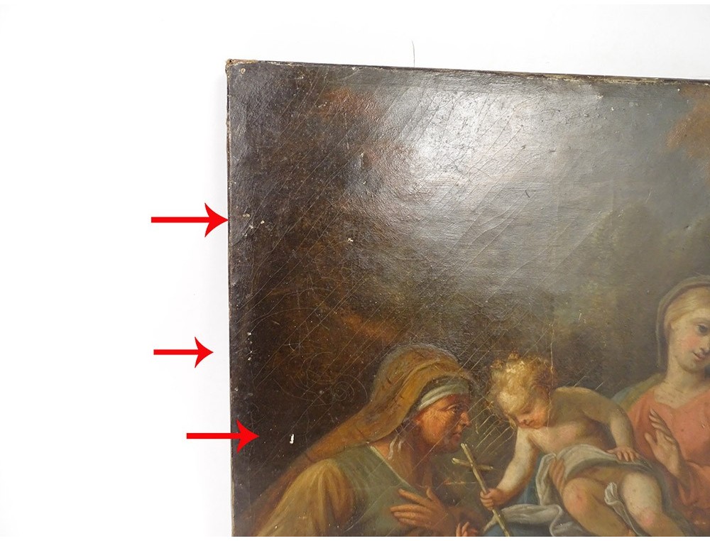 Oil on canvas depiction of the Virgin and Child Jesus blessing Saint John the Baptist. XIXth period.