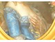 Pastel on canvas representing the portrait of a young noble girl from the 18th century elegantly dressed in a blue lace dress, wearing a pearl necklace and flowers in her hair, in a gilded wooden frame, from the 19th century.