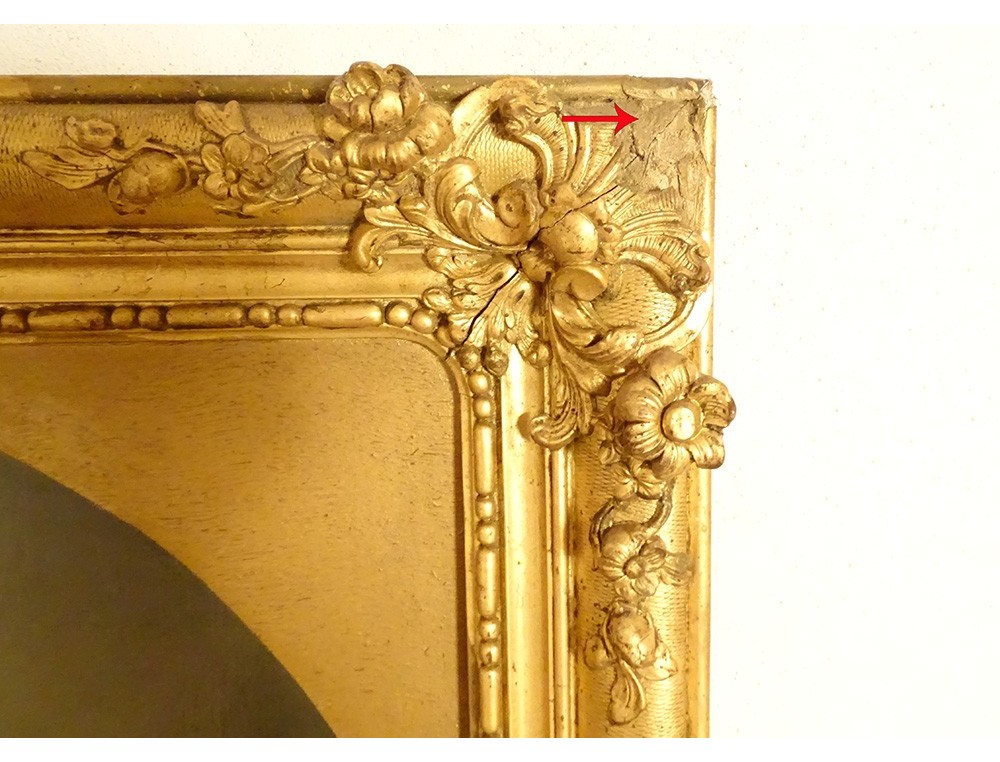Please note: accidents, missing parts and traces of restoration on the frame, see photos.