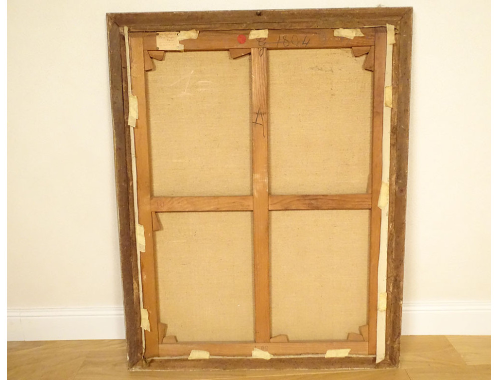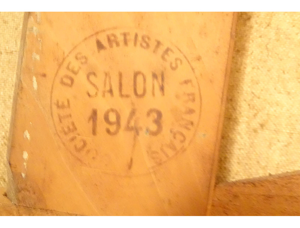 This painting is in good condition and is very decorative due to its large size. Signed and dated lower right Salon stamp (and numbers) on the frame.