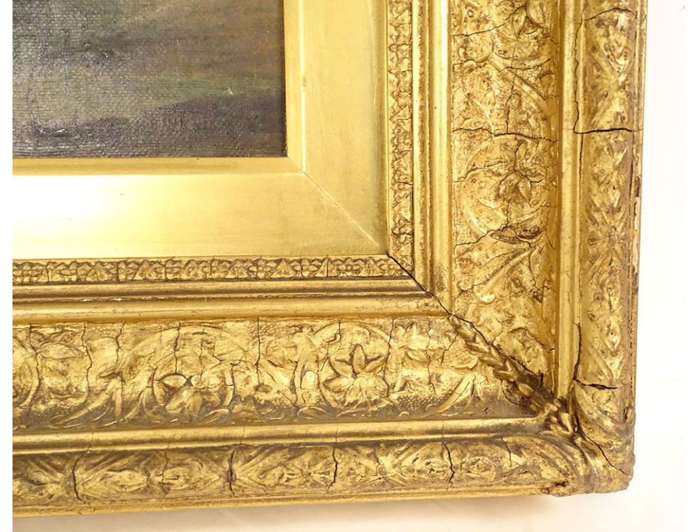 These paintings and their frames are in good condition and are very decorative. They are signed on the frames and on the back of the canvases.