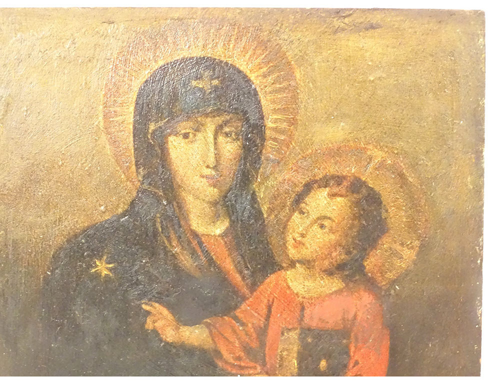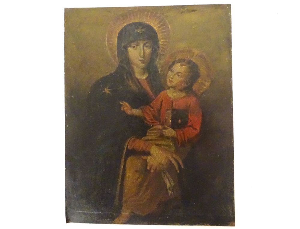 Oil on copper depicting the portrait of the Virgin and Child Jesus, after the famous icon "Salus populi romani" * in the Basilica of Santa Maria Maggiore in Rome, from the 18th century.