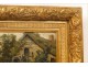 Oil on panel depicting a landscape of rolling English countryside with a mill and a small river in a wooden frame gilded stucco, signed Bloomer *, of XIXth century.