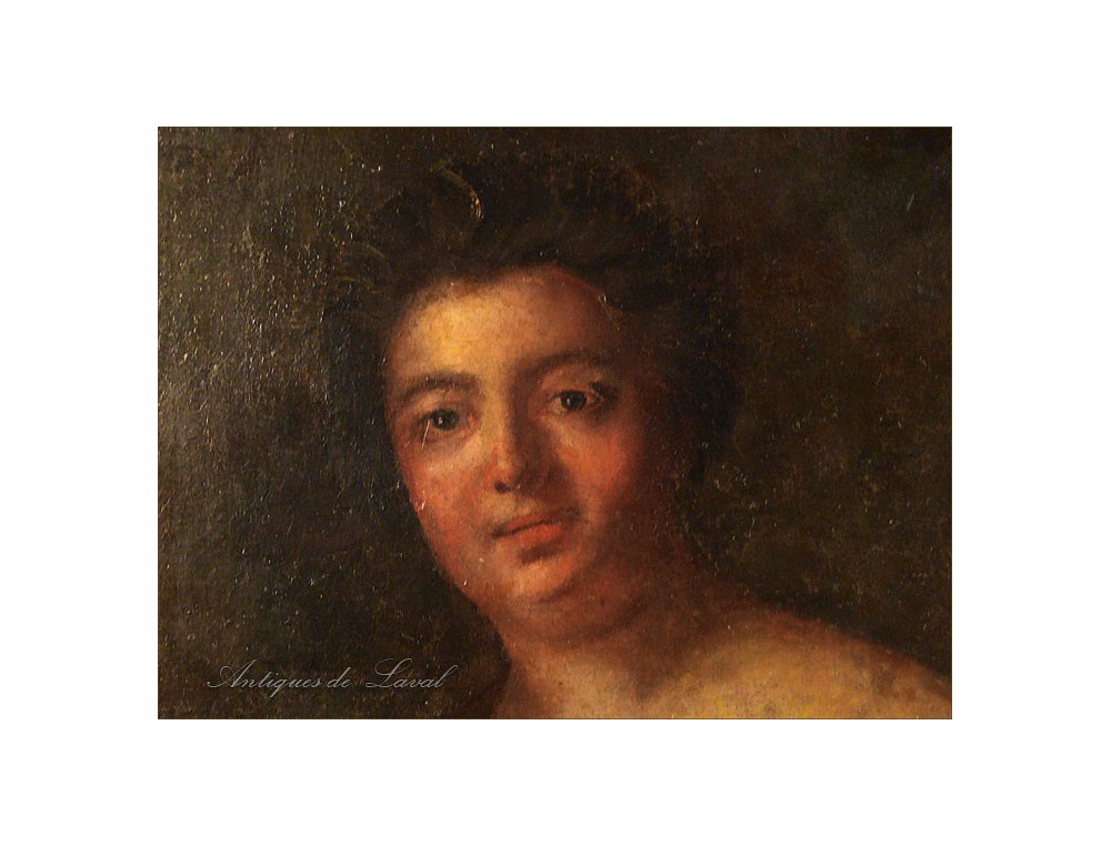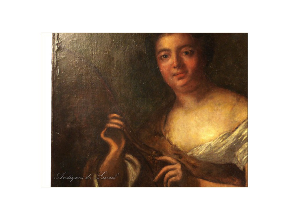 Oil on canvas depicting a vintage Diane Huntress eighteenth century perhaps Nattier or one of these students.