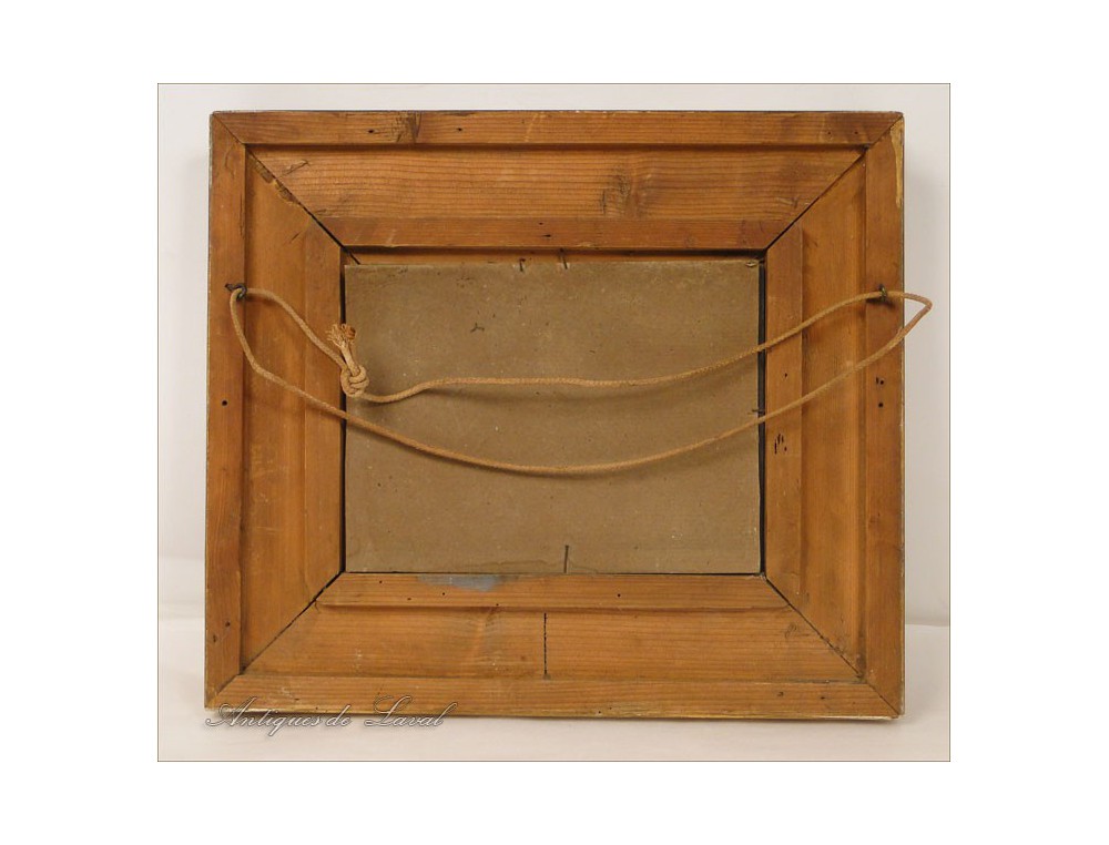 This painting is in good condition. It is under glass. Its frame is also in good condition.