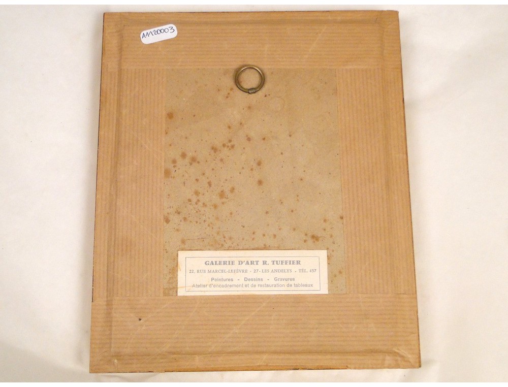 This oil is in good condition. It is signed on the pot (see last photo of another table signed by this artist). It bears the label of the Art Gallery R.Tuffier Les Andelys.