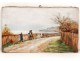 Very nice small oil on canvas landscape rerpésentant seaside Pouldu in Finistère (Brittany), with walkers looking out to sea, vintage early twentieth century.