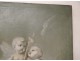 HST exceptionally large grisaille representing three little cherubs or putti sitting on a cloud in the sky, one holding a bird in her arms, the other two admiring a flower, antique eighteenth century.