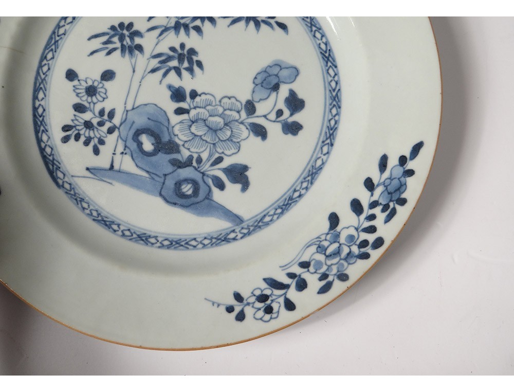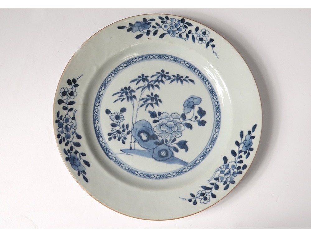 Plate or hollow dish in Chinese porcelain of the East India Company, with a white-blue decoration of a beautiful tree in a flower garden, Kangxi eighteenth century.