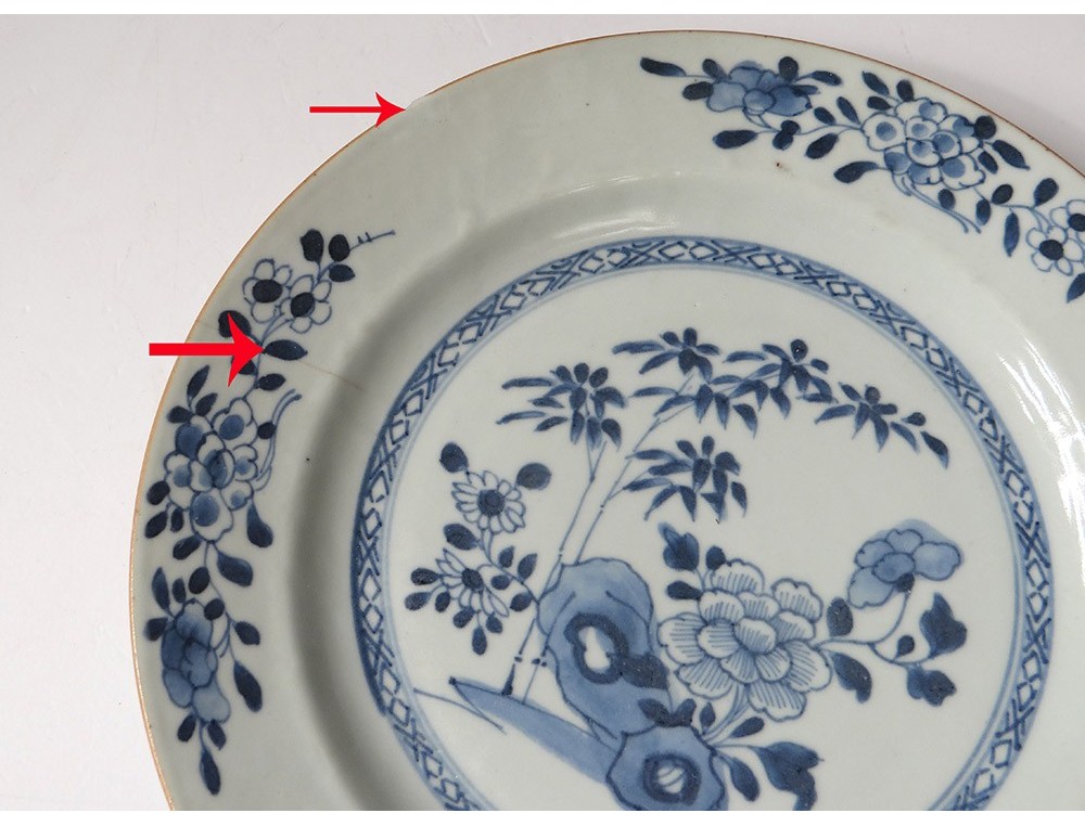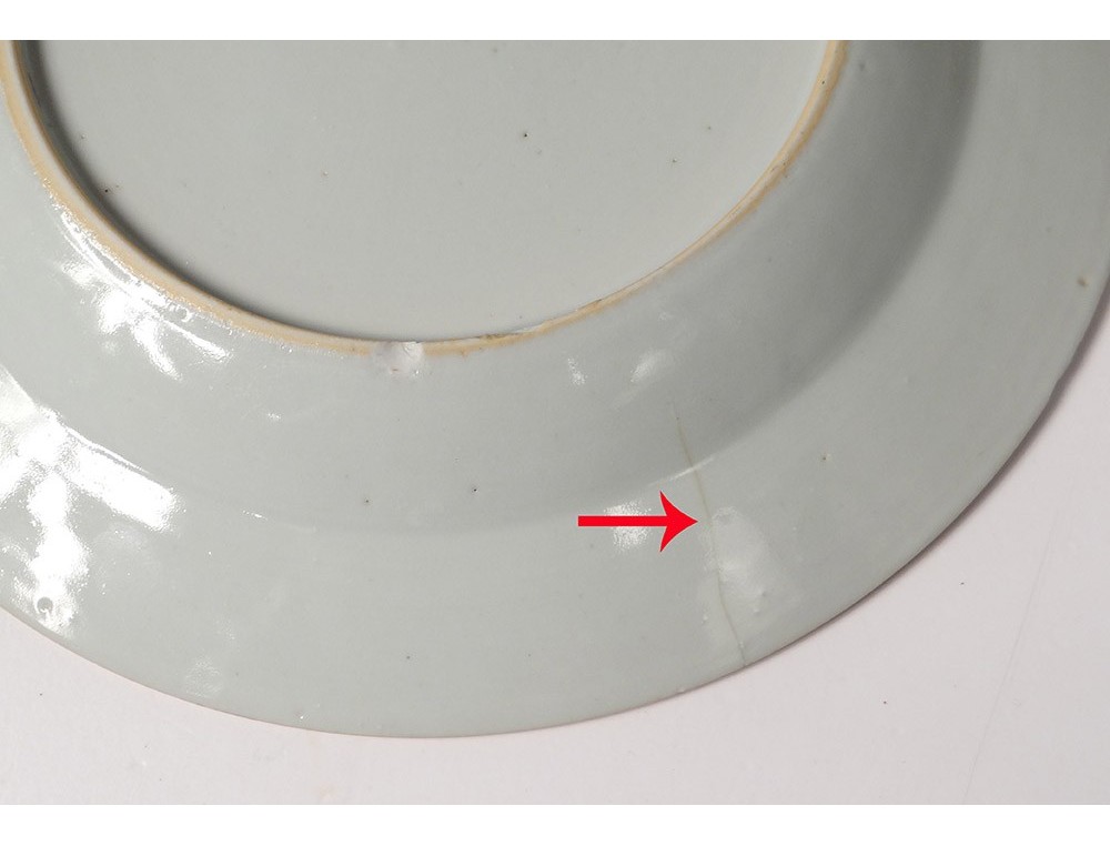 A report: crack, micro-égrenures, some enamelling defects in the background, wear of time, see photos (see red arrows).