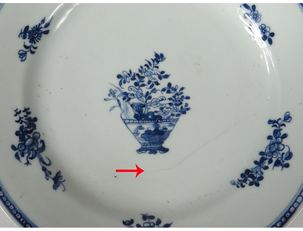 A note: two fairs on the edges of a dish, small chips, échures and chips, enamelling defects, wear of time, see photos (see red arrows).