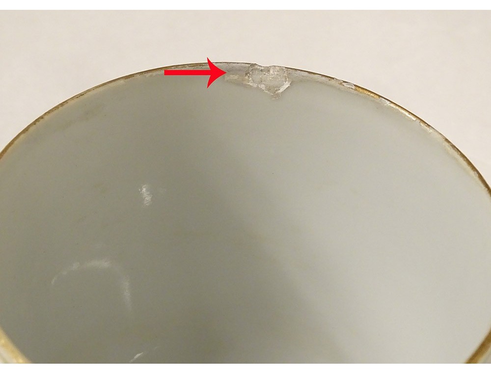 A note: some chips on the edge, enamelling defects and wear of time, see photos.