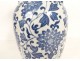 Pair of baluster-shaped vases in Chinese porcelain with rich white-blue decoration of peonies and plant arabesques, handles in the shape of fantastic animals in applique, apocryphal signature with 6 characters Chenghua on the base, from the early 20th century.
