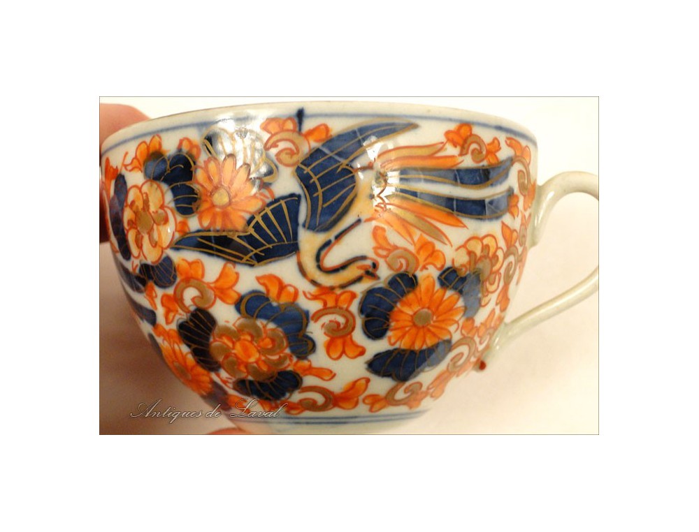 Pair of Imari porcelain cups, decorated with colorful birds, flowers and gilding, antique late eighteenth and early nineteenth centuries.