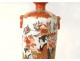 Japanese porcelain vase decorated with a bird surrounded by flowers in shades of red, two geishas in a flower garden, XIXth century.