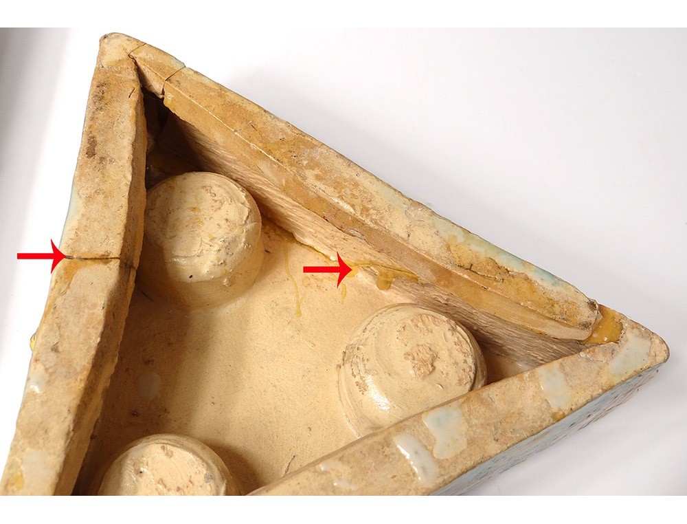 A note: a container was broken and glued on one side, many échures, small chips and gaps on the edges and edges, wear of the time, well look at the photos.