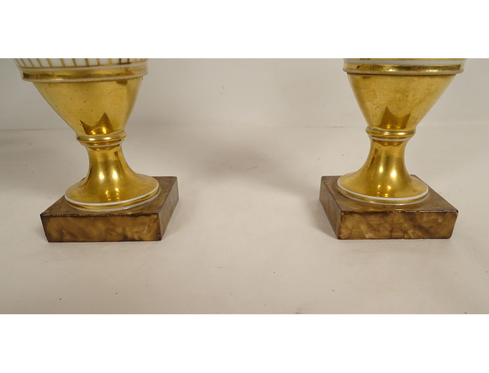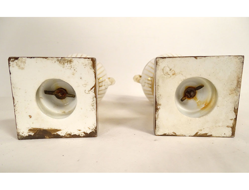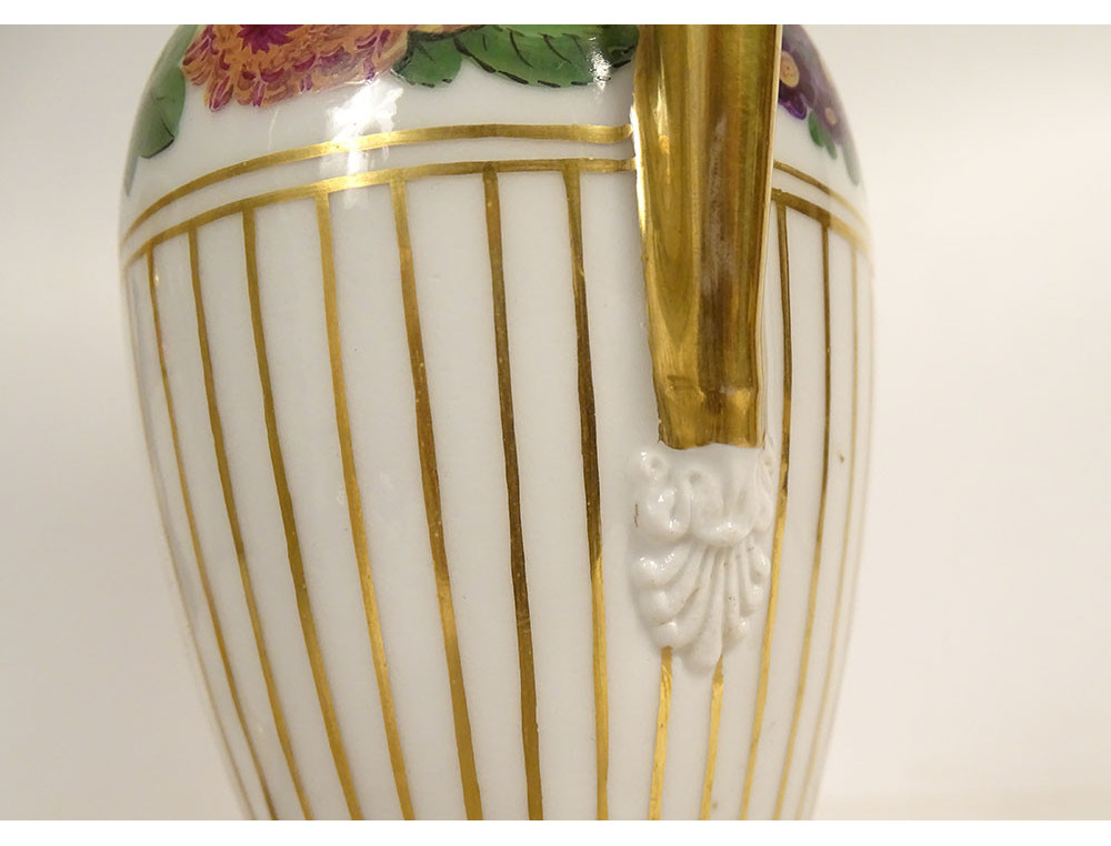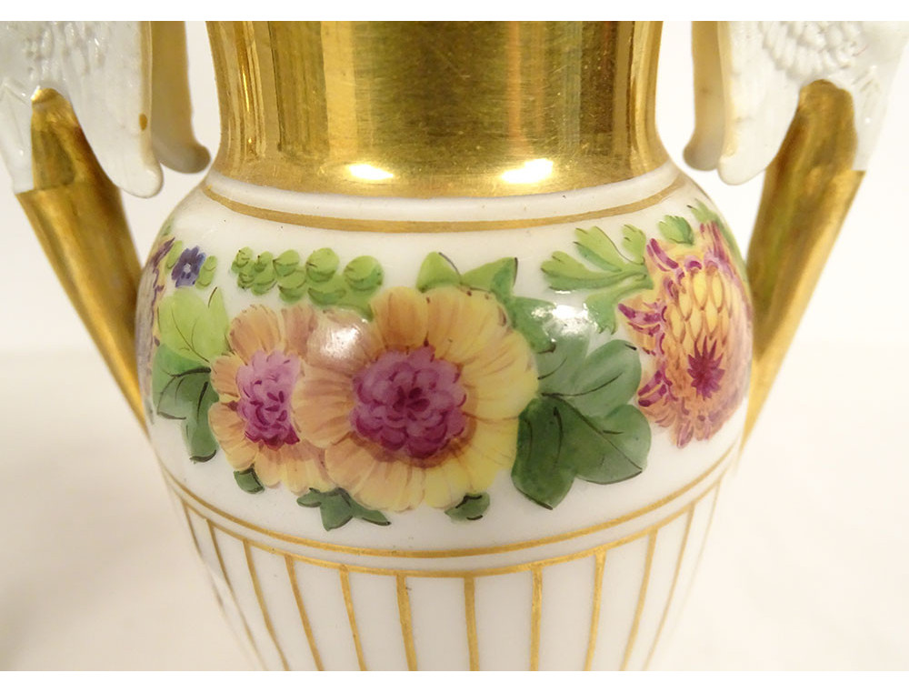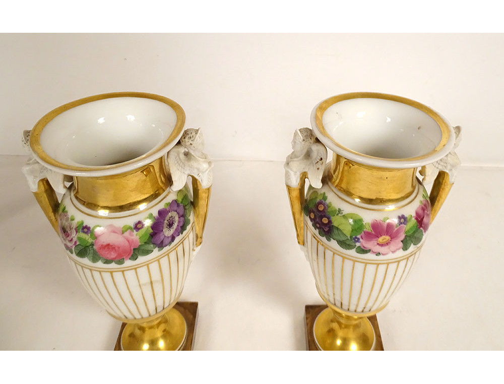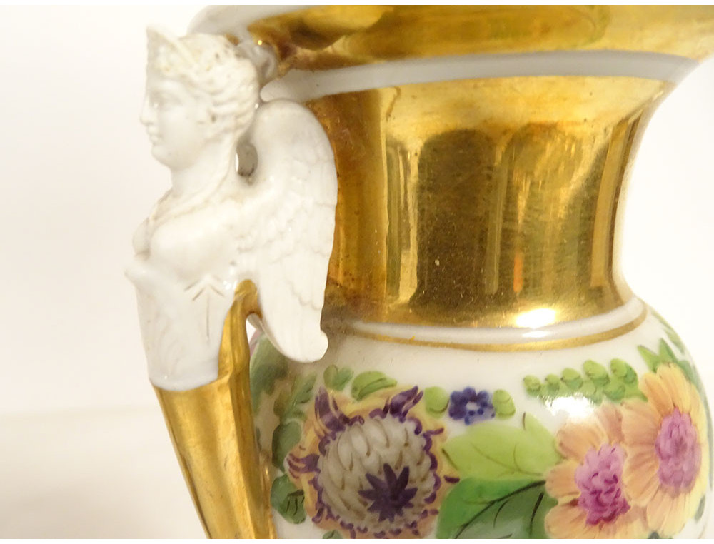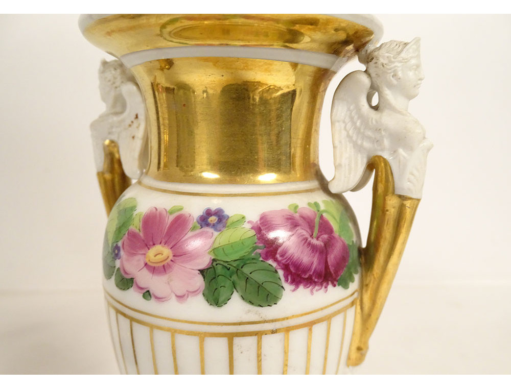 Pair of porcelain baluster vases Paris flowers winged women 1st Empire 19th century