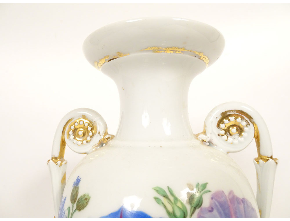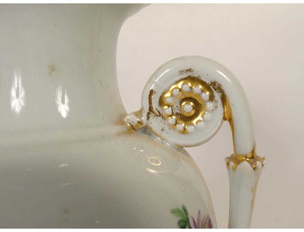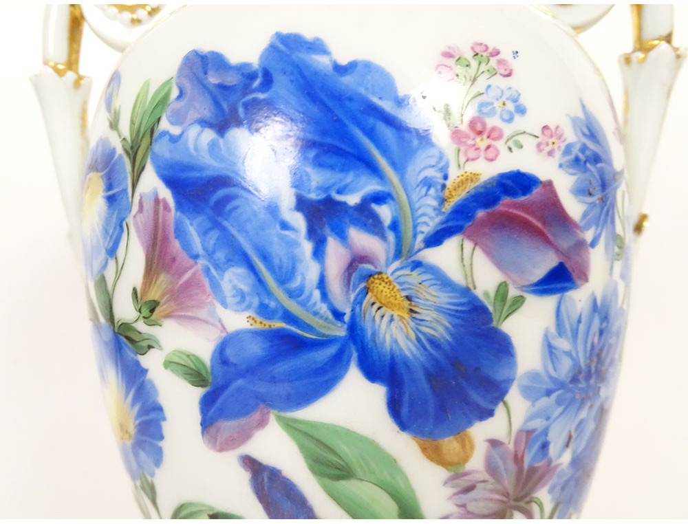 Meissen German porcelain amphora vase with iris, cornflower, and bindweed flowers, 19th century