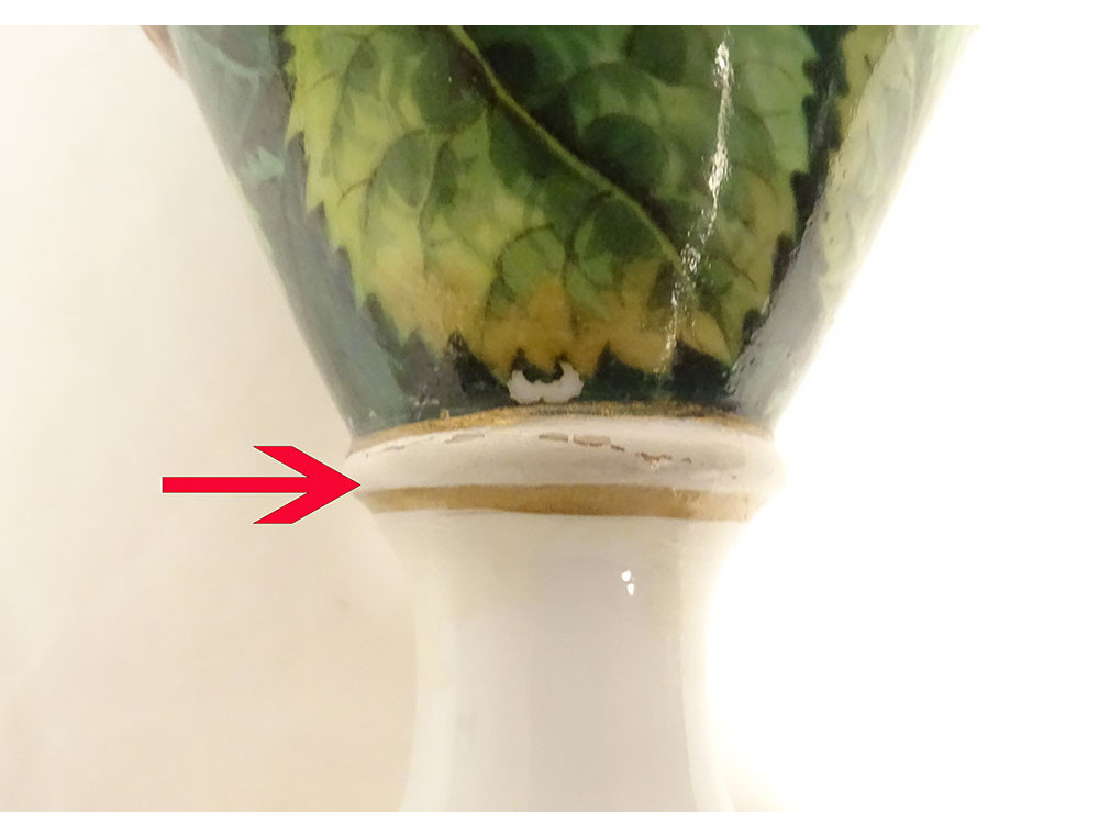 Note: the top of the base has been restored (see last photos with red arrows), wear to the gilding.