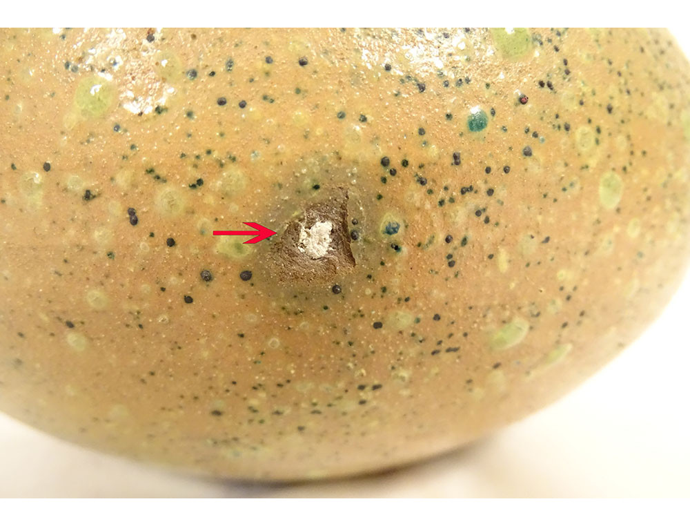 Note: small defects in the ceramic visible in photos (see red arrow), minor chips on the bottom, wear and tear from age, see photos.